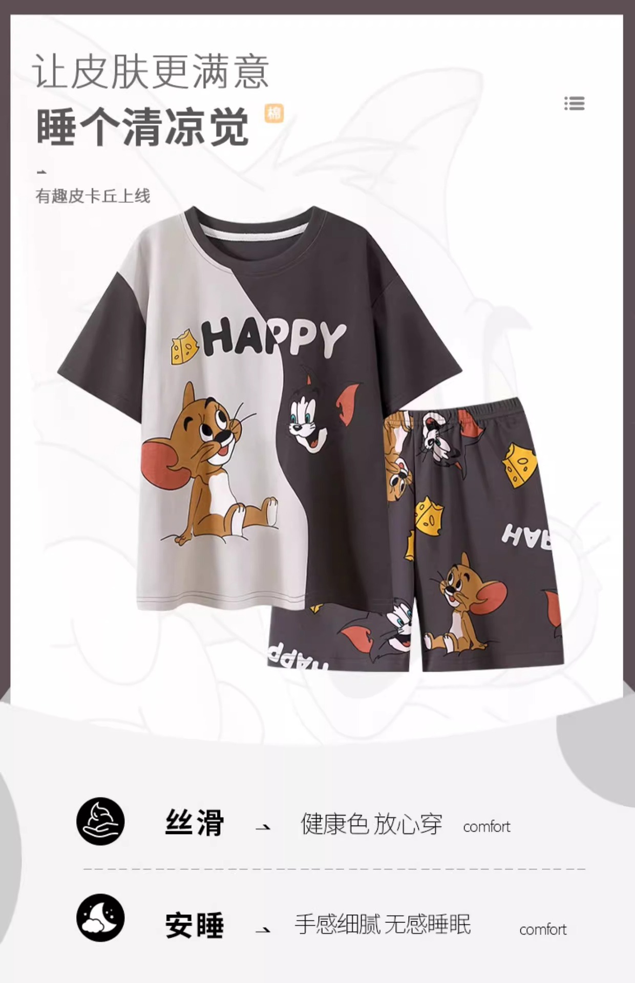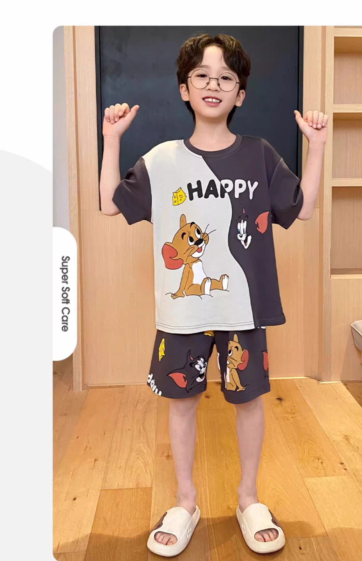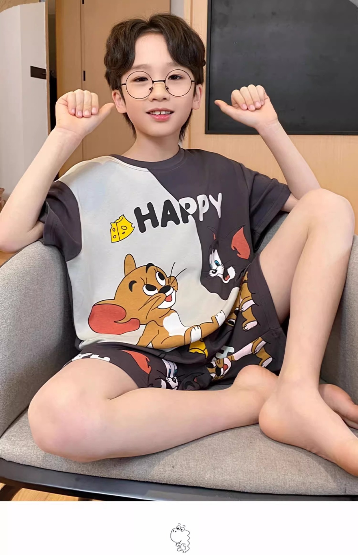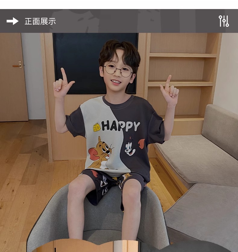 2024 새로운 소년 잠옷 여름 반팔 바지 얇은 어린이 작은 소년 십대 큰 아이 아기 홈 옷스토어 가기