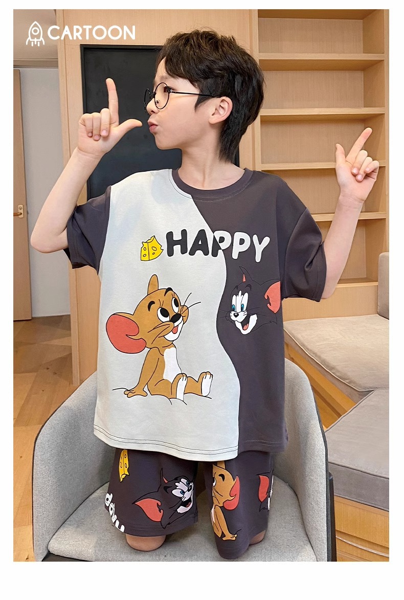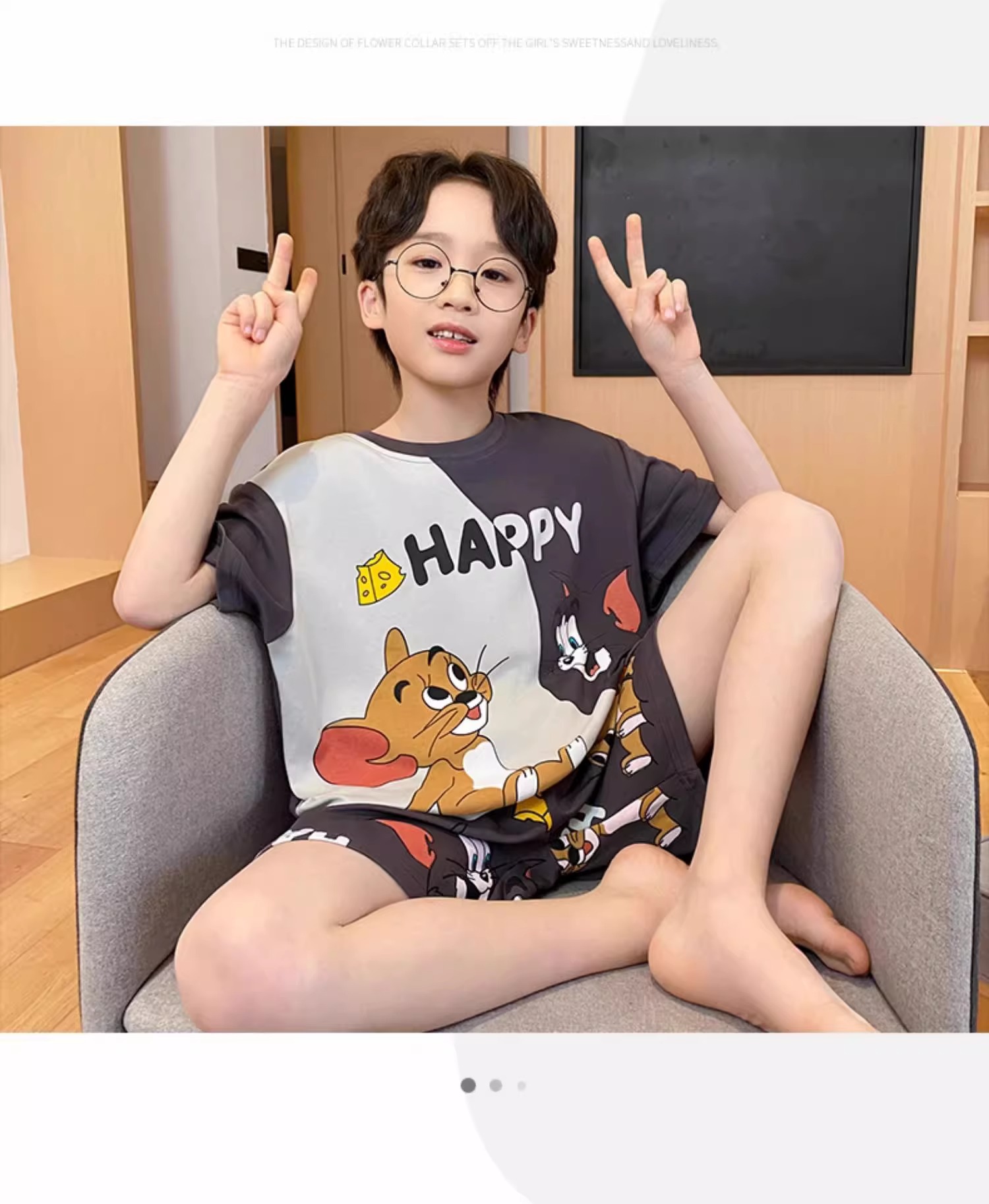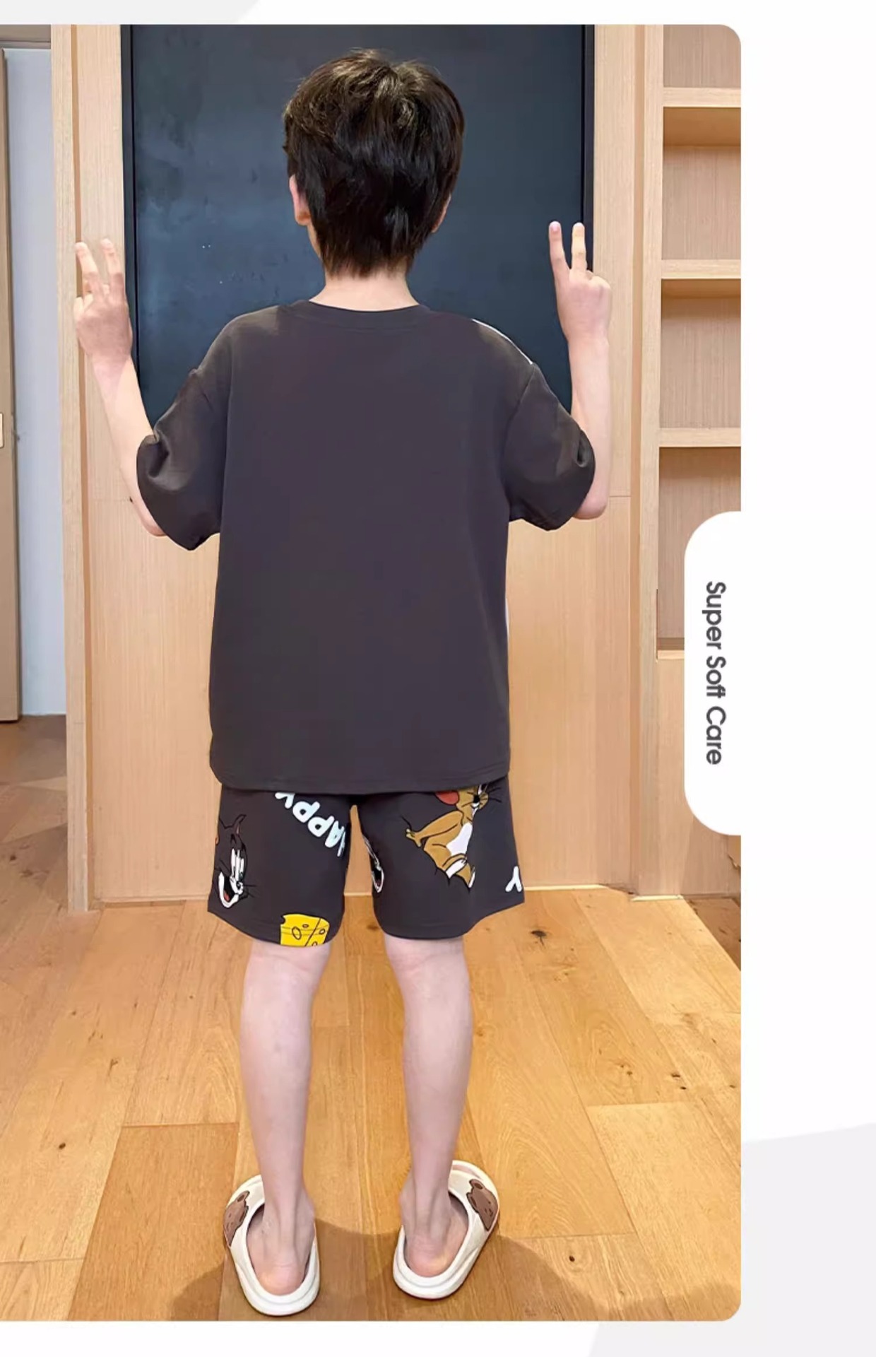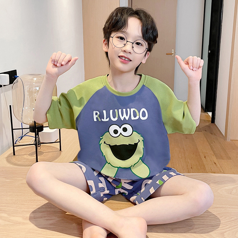 2024 새로운 소년 잠옷 여름 반팔 바지 얇은 어린이 작은 소년 십대 큰 아이 아기 홈 옷