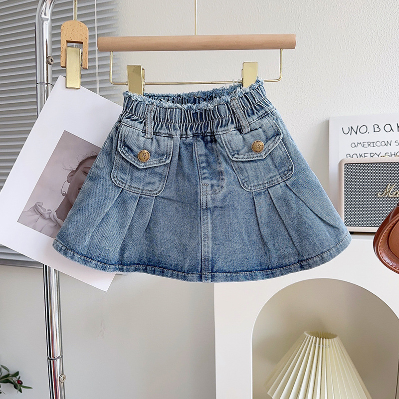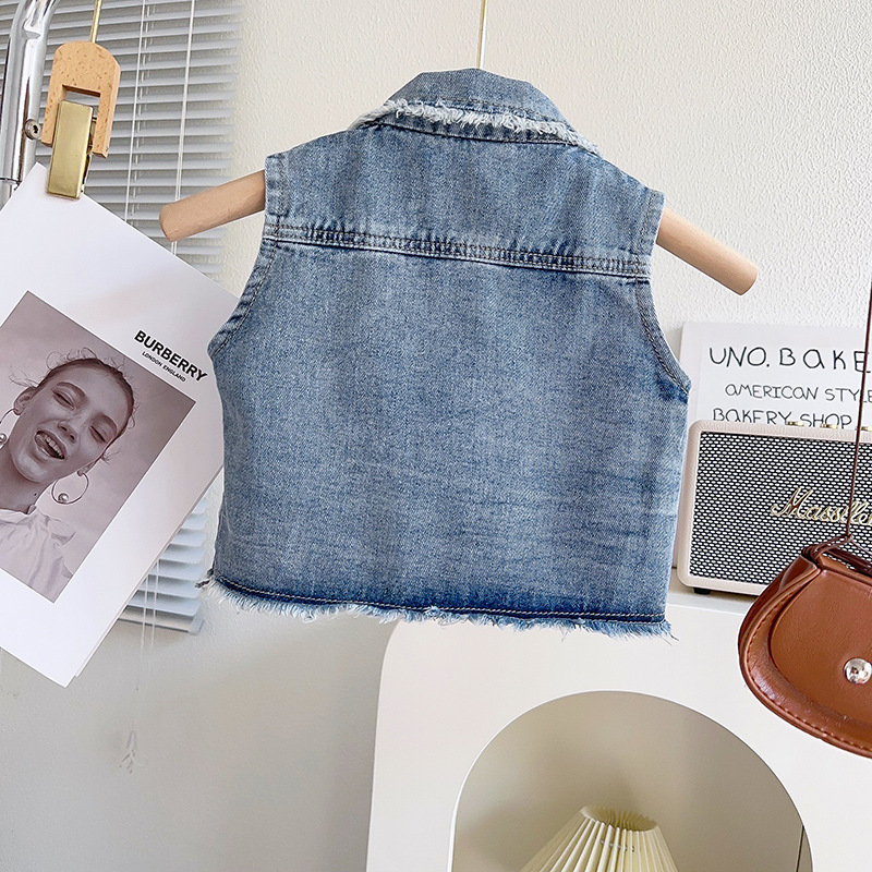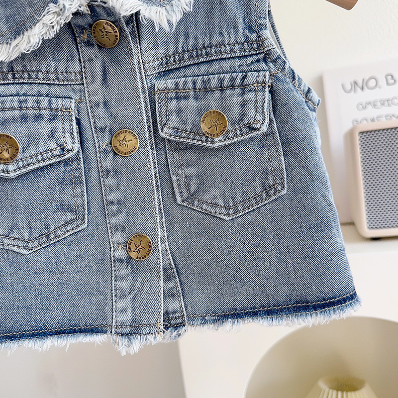 소녀의 데님 원피스 여름 소녀의 우아한 민소매 러플 민소매 자켓 세련된 원피스 패션 투피스 세트