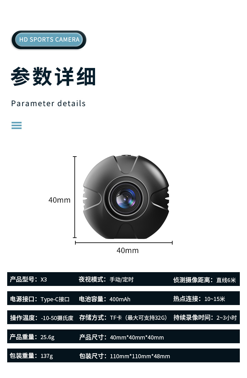 X3 HD 카메라 홈 스마트 1080p 무선 wifi 적외선 야간 투시경 스포츠 카메라 라이딩 레코더스토어 가기