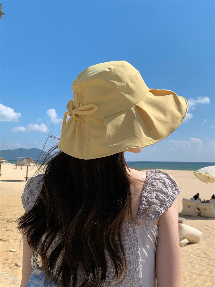 Jichu Fisherman Hat 여성의 활 봄과 여름 새로운 스타일 분지 모자 햇빛 선스크린 모든 경기 접이식 얼굴 작은 캐주얼 대형스토어 가기