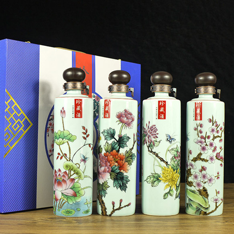 Jingdezhen 세라믹 1kg 와인 병 와인 항아리 봉인 된 와인 냄비 곧바로 봄, 여름, 가을, 겨울 선물 상자 세트 빈 병 와인 용품스토어 가기