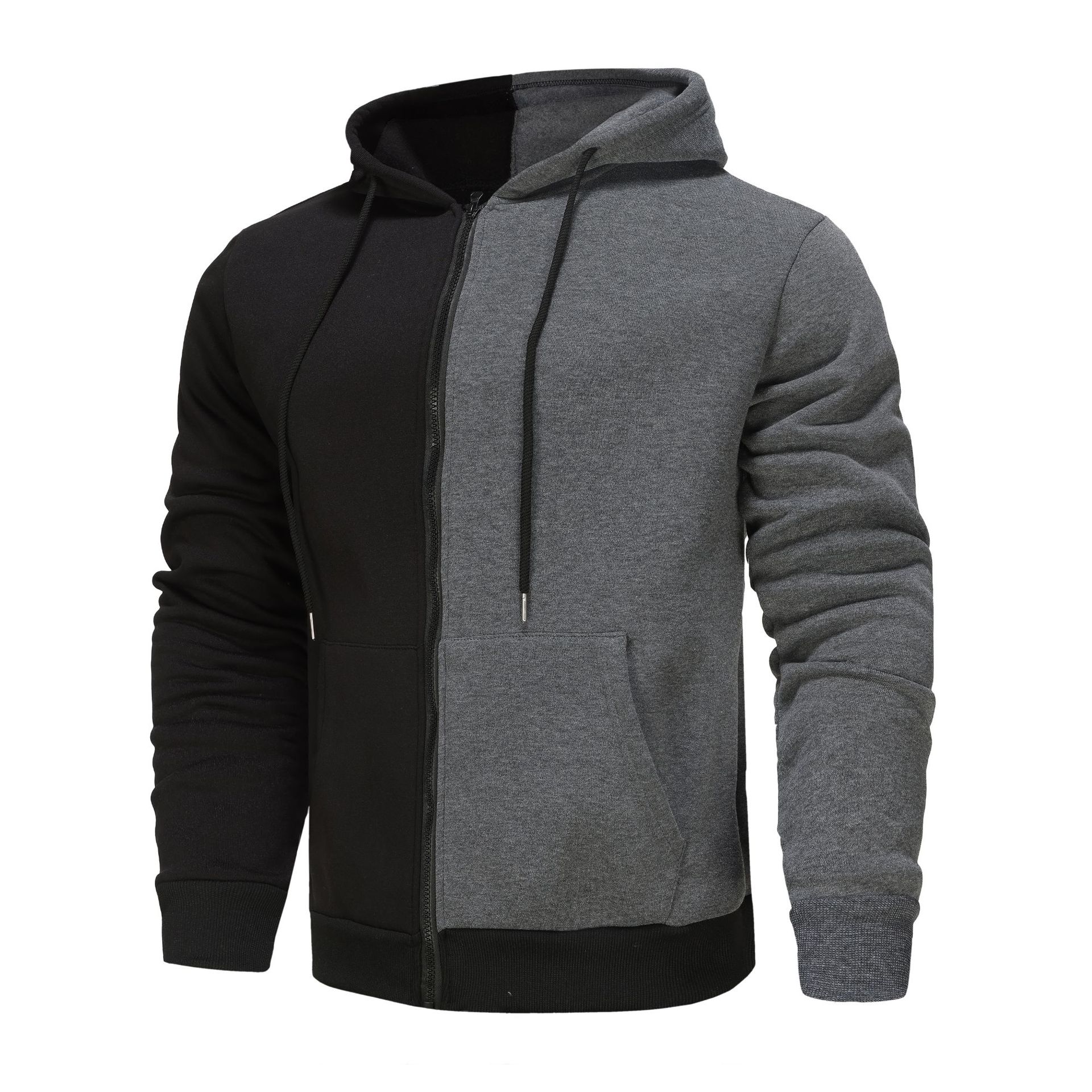 새로운 TEMU 아마존 유럽과 미국의 뜨거운 판매 남성 컬러 블록 후드 지퍼 재킷 카디건스토어 가기