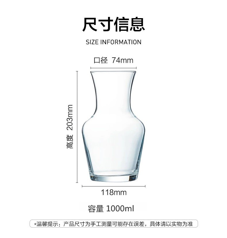 高度203mm 口径74mm 容量约1000ml