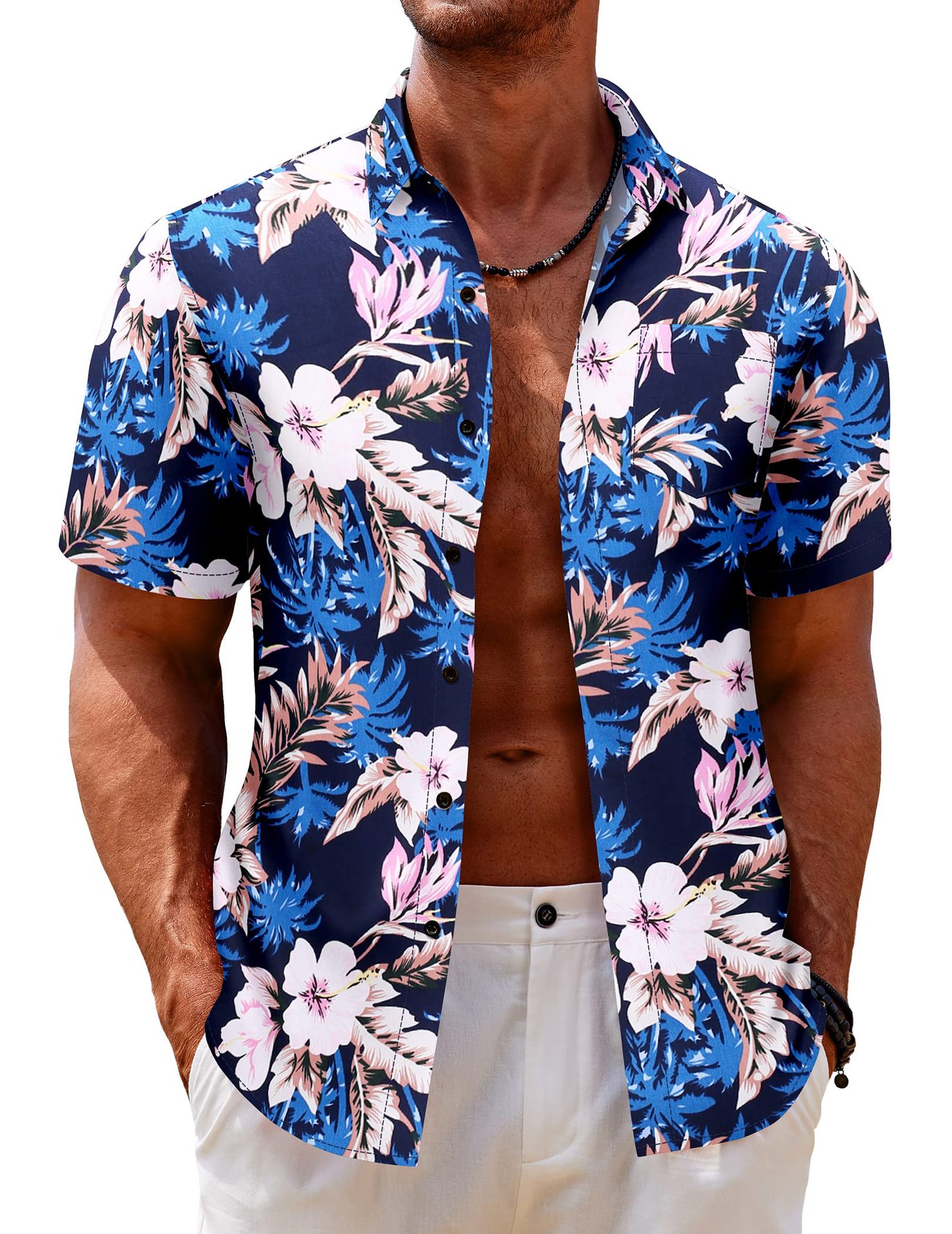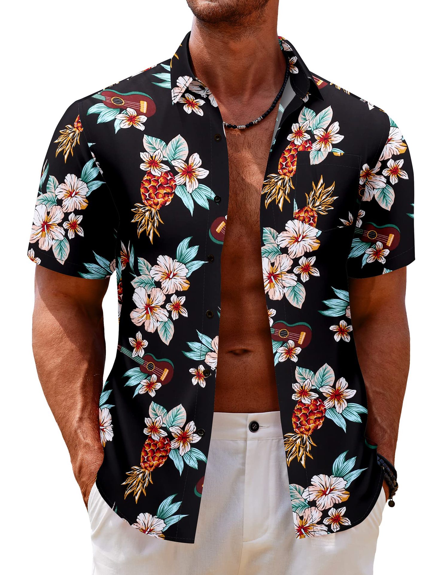 여름 유럽과 미국의 대외 무역 하와이 남성 캐주얼 반팔 옷깃 포켓 3D 프린트 셔츠 스트레이트 헤어스토어 가기