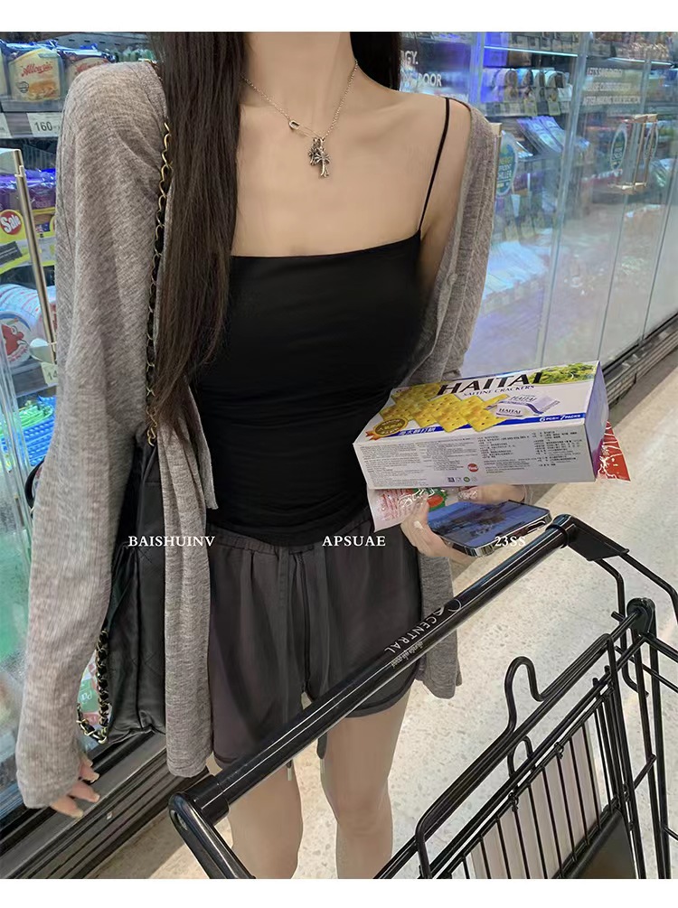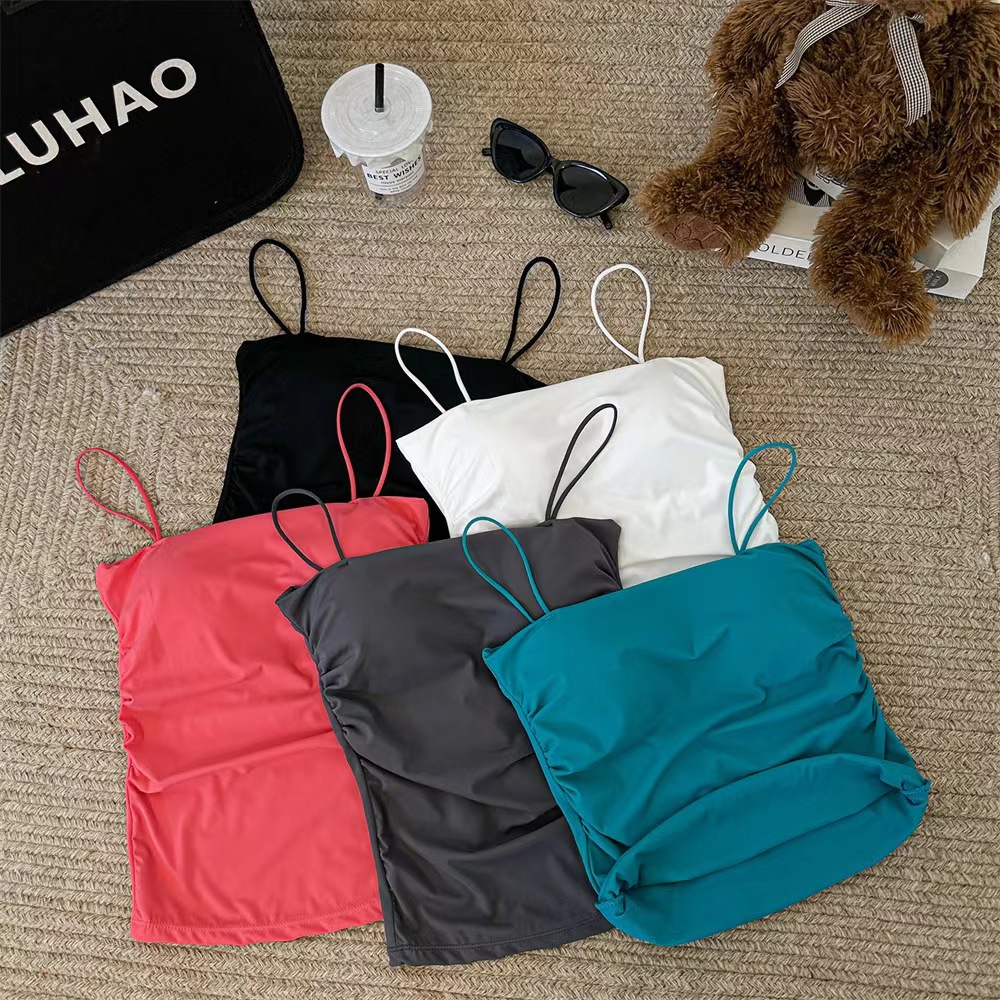 Comes-in-style 가슴 패드 조끼 슬링 여성 외부 확장 아이스 실크 만화 가슴 공개 가슴 대형 내부 착용 아우터 웨어 슬림 핏 탑