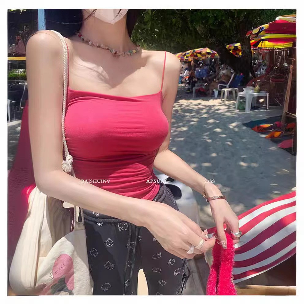 Comes-in-style 가슴 패드 조끼 슬링 여성 외부 확장 아이스 실크 만화 가슴 공개 가슴 대형 내부 착용 아우터 웨어 슬림 핏 탑스토어 가기