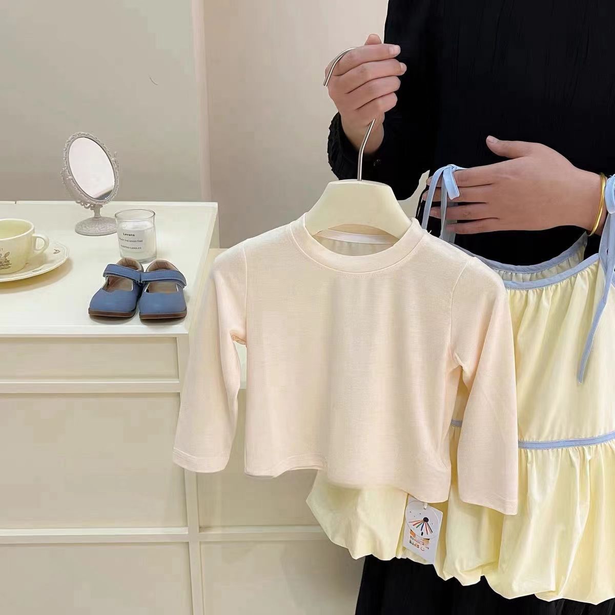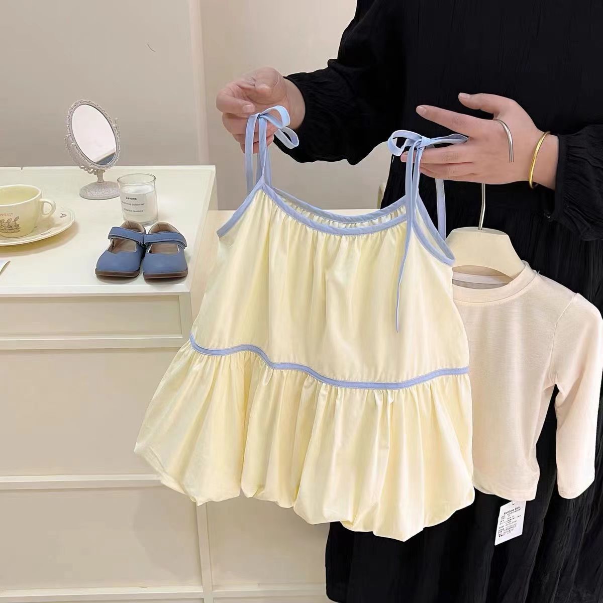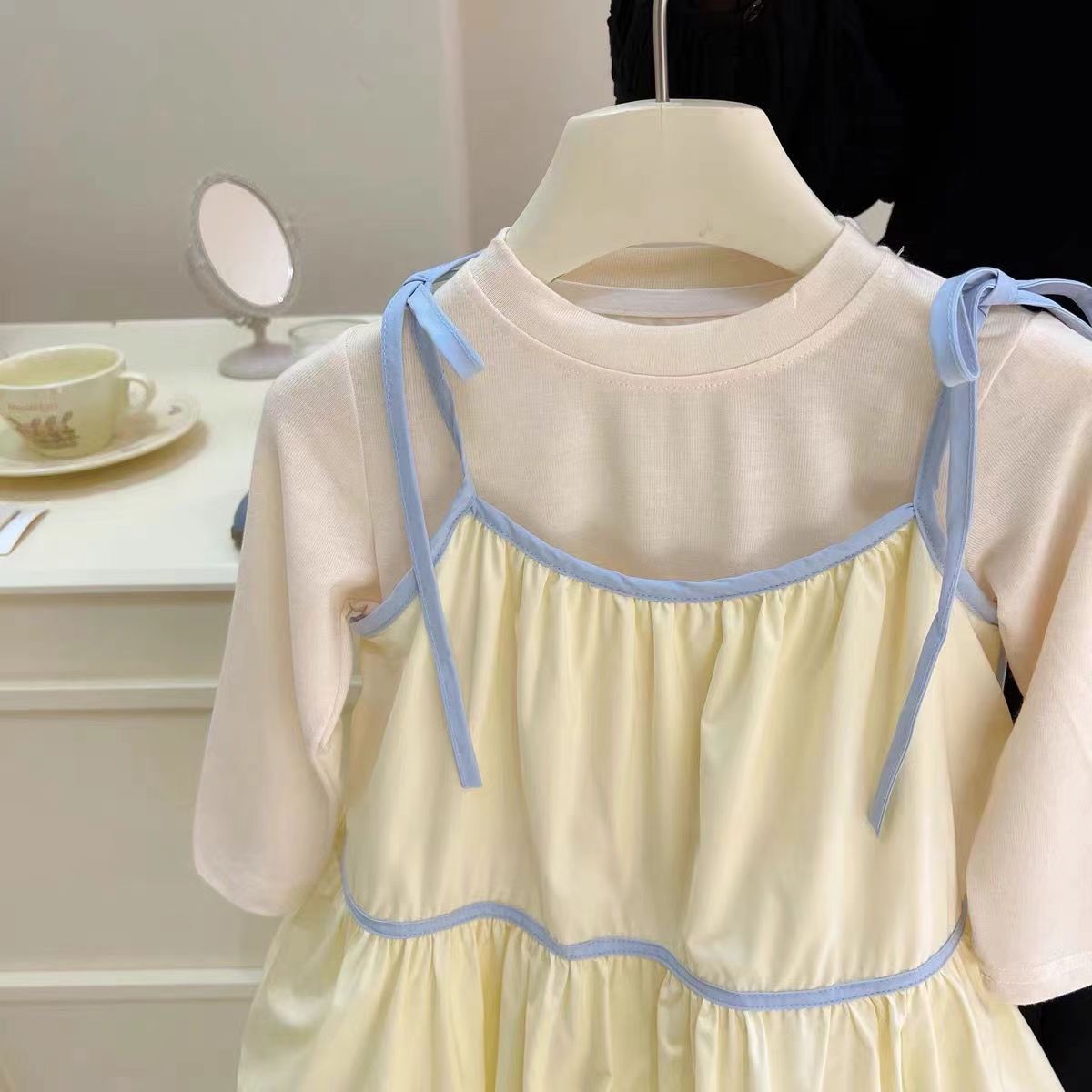 소녀의 봄 세트 2024 새로운 스타일 스트랩 원피스 소녀의 달콤한 푹신한 꽃 버브 원피스 투피스 세트스토어 가기