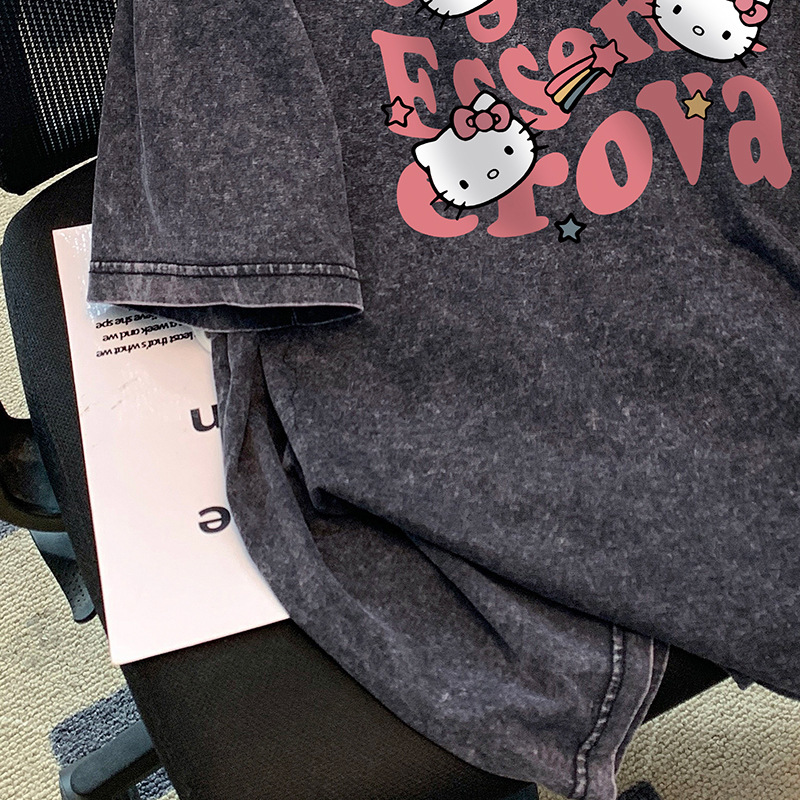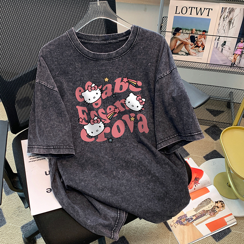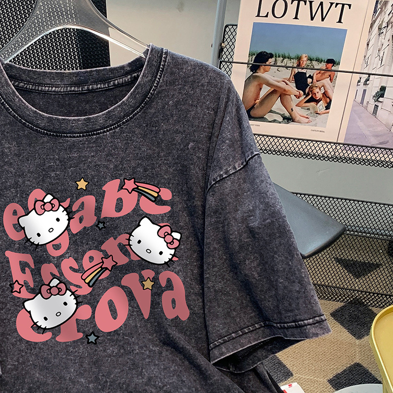 퓨어 코튼 세탁 오래 된 반팔 티셔츠 여자 여름 아메리칸 스타일 레트로 힙합 오버 사이즈 커플의 올 매치 탑 트렌디스토어 가기