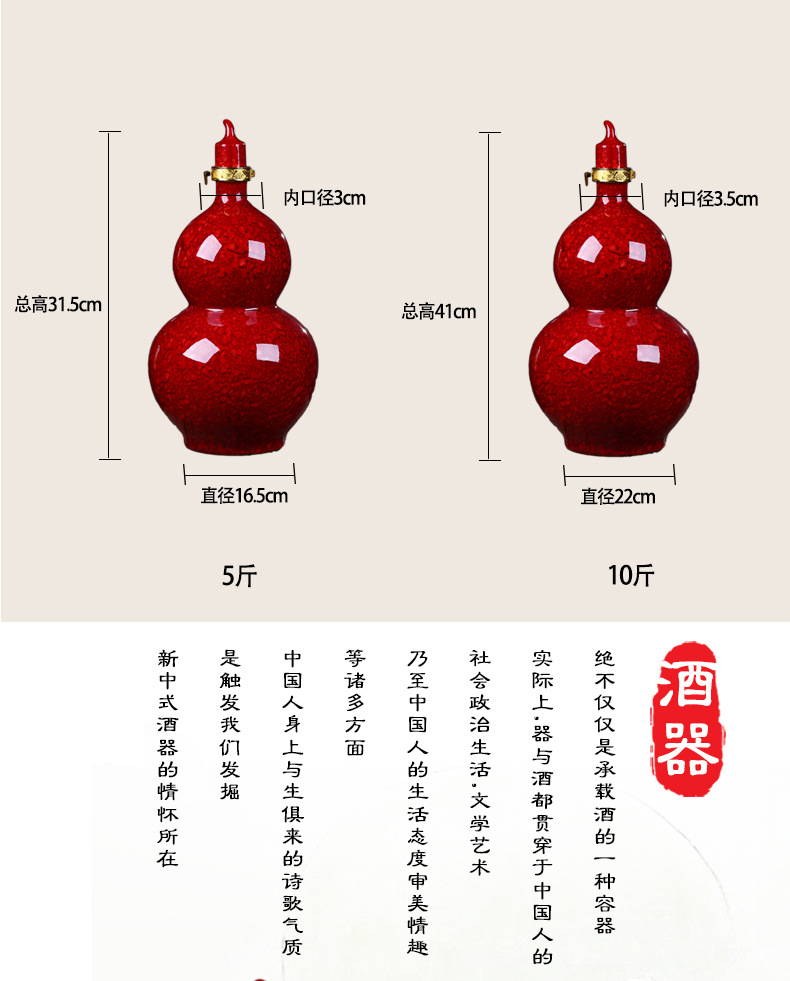 Jingdezhen 세라믹 와인 병 빈 병 봉인 와인 포트 조롱박 와인 병 5kg 물 방울 유리 세라믹 와인 항아리 10kg스토어 가기
