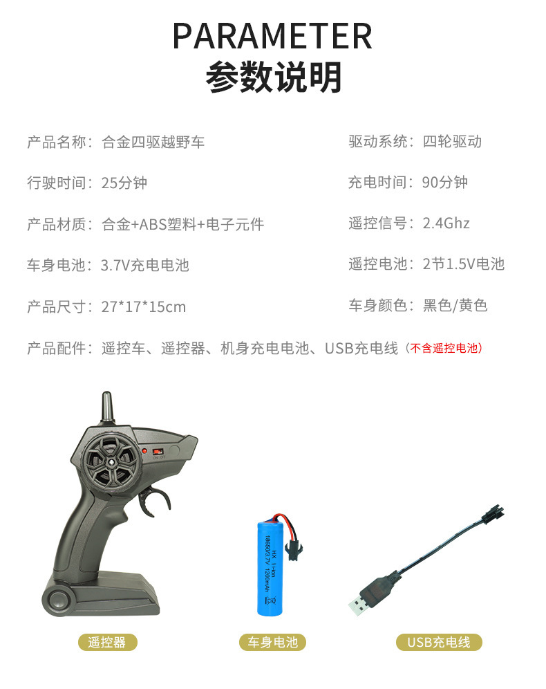 • 합금 4 륜 구동 오프로드 차량 라이트 블랙
