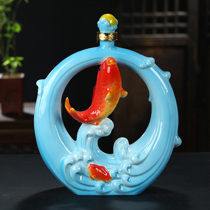 창조적 인 와인 병 와인 항아리 3 진 징 데첸 세라믹 셰퍼드 소년 승마 소 장식품 가정용 밀봉 된 와인 병 장식 와인 병스토어 가기