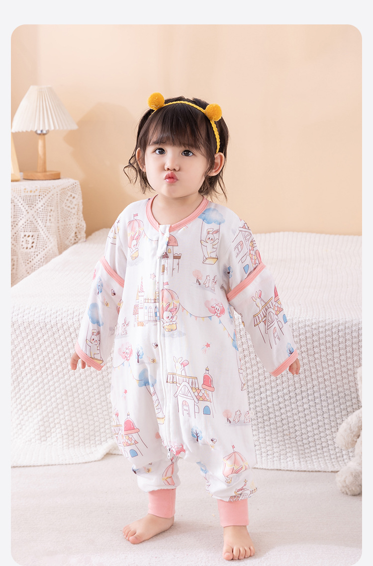 아기 아기 슬리핑 백 다리 스플릿 거즈 대나무면 봄, 가을, 여름 어린이 슬리핑 백 모든 계절을위한 슬리핑 아티팩트 킥 방지 퀼트