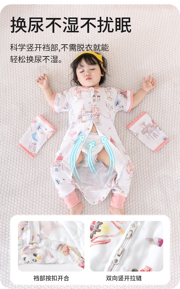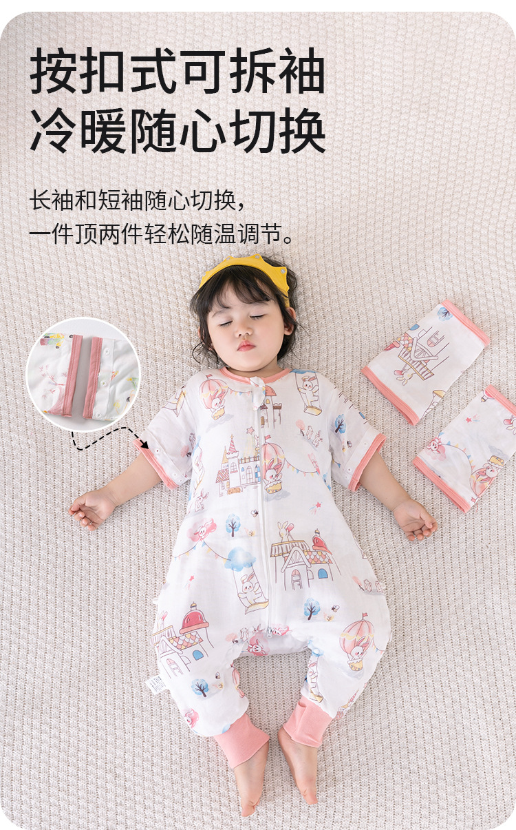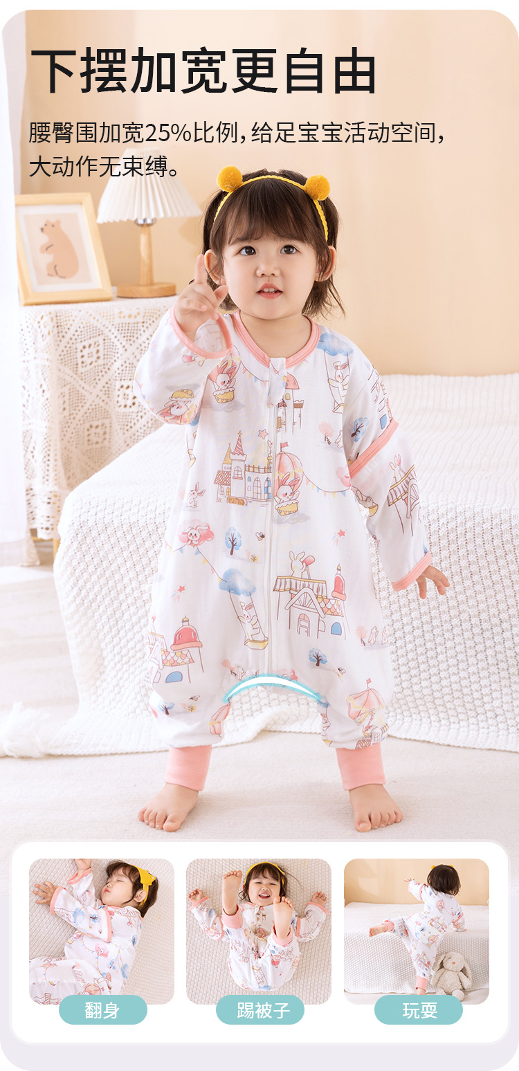 아기 아기 슬리핑 백 다리 스플릿 거즈 대나무면 봄, 가을, 여름 어린이 슬리핑 백 모든 계절을위한 슬리핑 아티팩트 킥 방지 퀼트스토어 가기