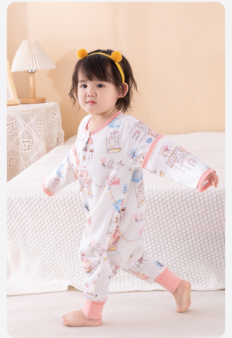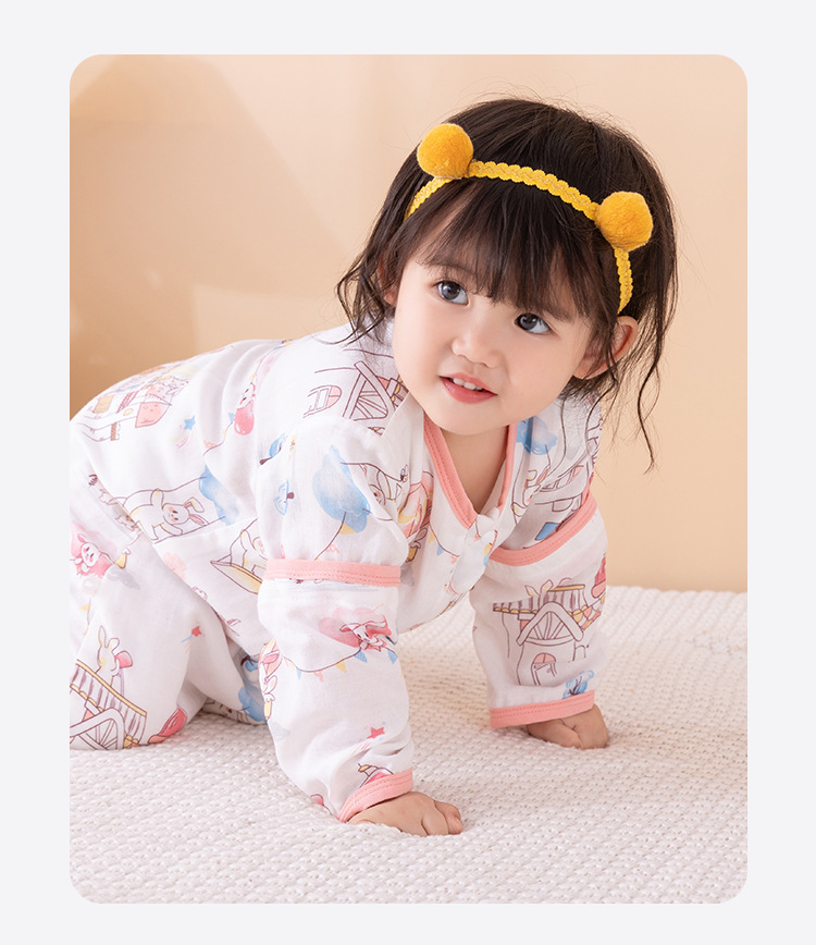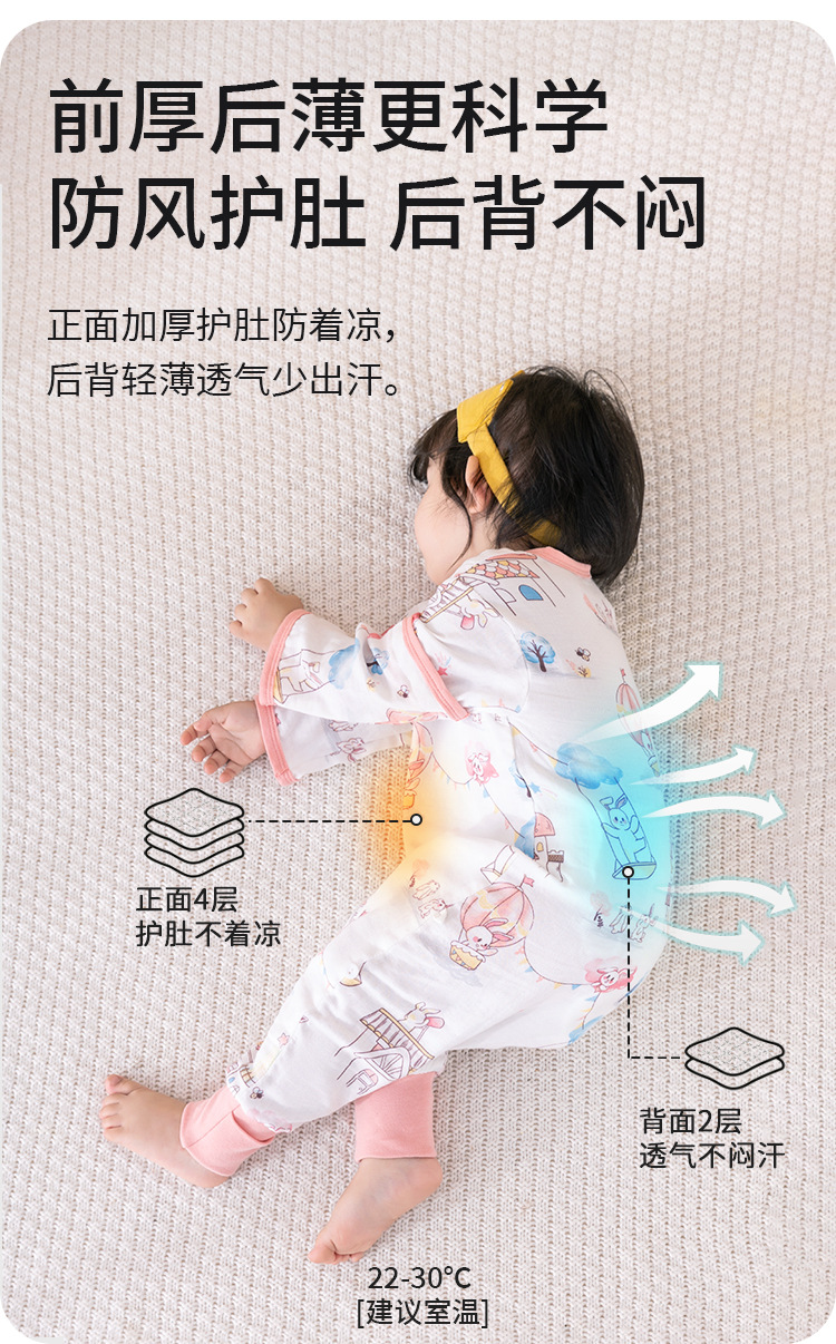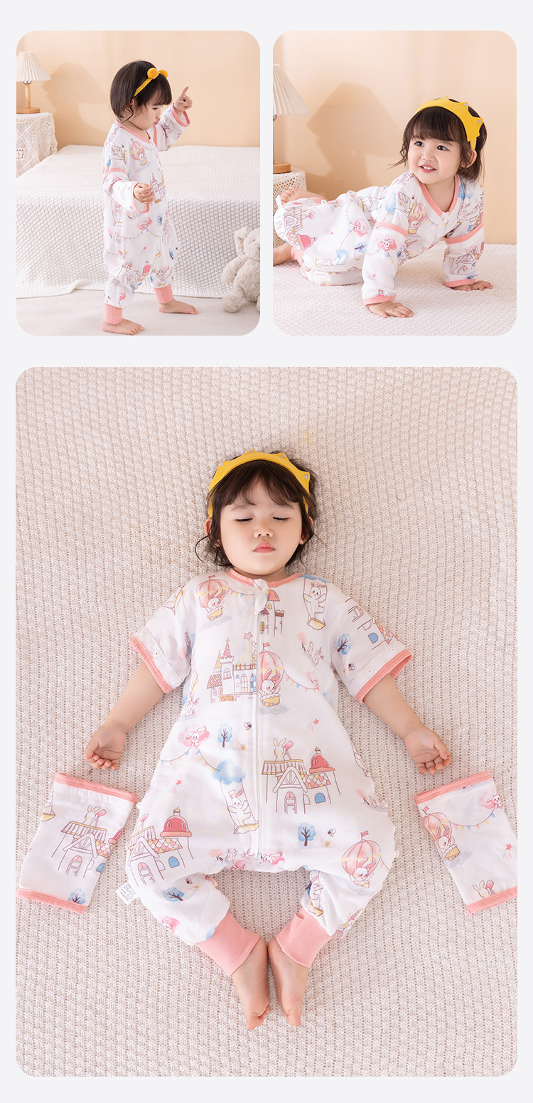 아기 아기 슬리핑 백 다리 스플릿 거즈 대나무면 봄, 가을, 여름 어린이 슬리핑 백 모든 계절을위한 슬리핑 아티팩트 킥 방지 퀼트스토어 가기