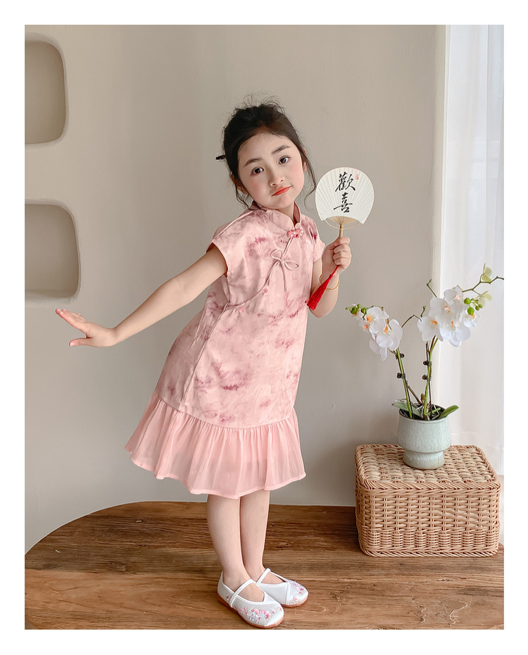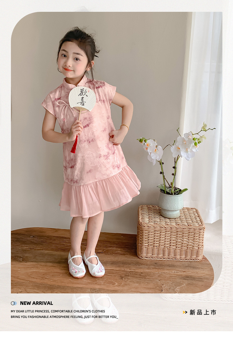 여자 여름 드레스 2025 새로운 스타일 여자 새로운 중국 스타일 공주 드레스 여름 드레스 중국 스타일 어린이 치파오 드레스