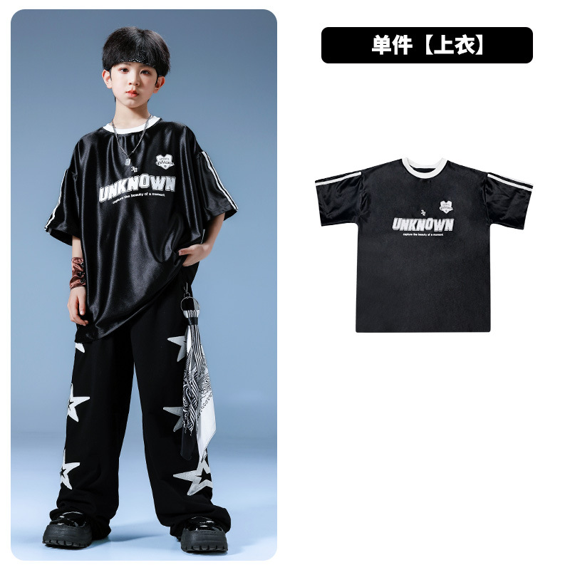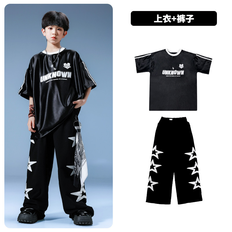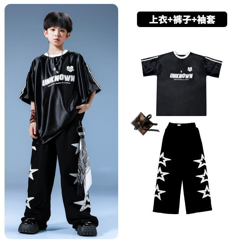 • 세트 [620D 블랙 밝은 가죽 짧은 소매 544D 화이트 스타 블랙 바지]]