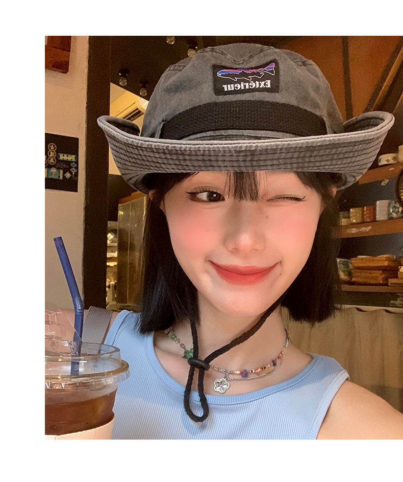 Yi Yi Western Cowboy Hat 어린이 일본 여름 Big Hat Brim 야외 Sunshade Sunscreen Washed Fisherman Hat 하이킹