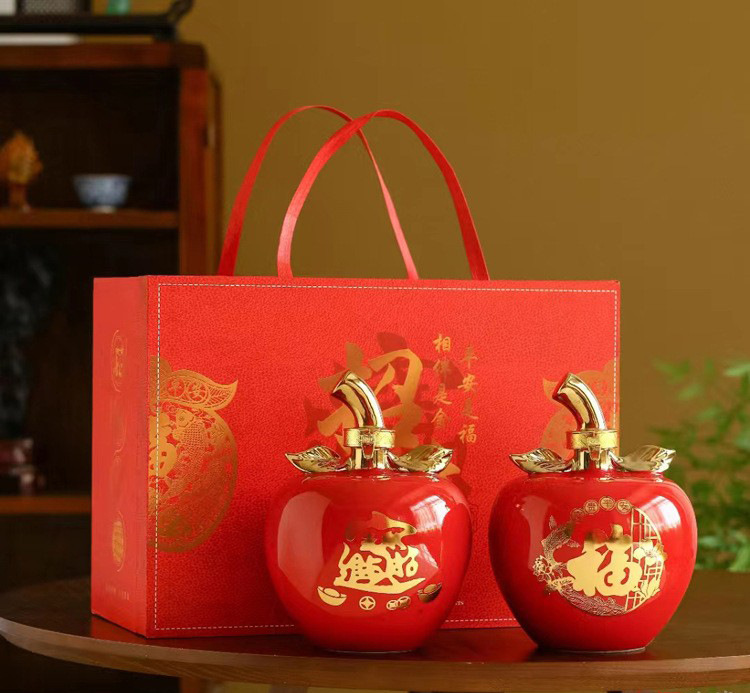 창조적 인 사과 와인 병 세라믹 2 병 5 진 선물 장식 축제 선물 애플 스타일 와인 병
