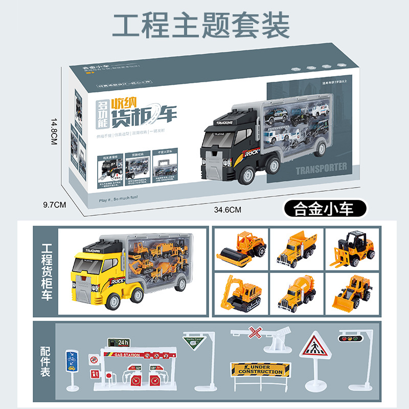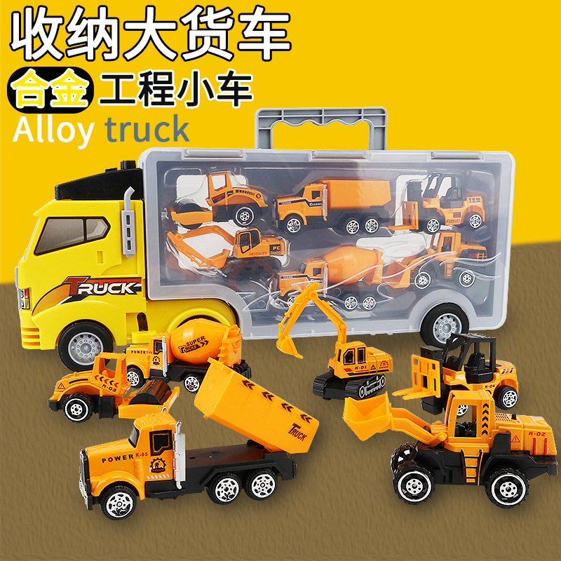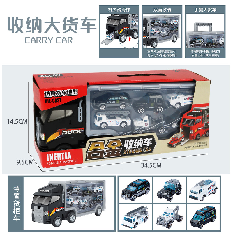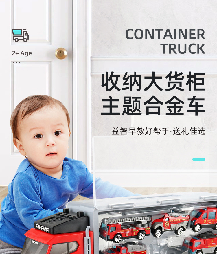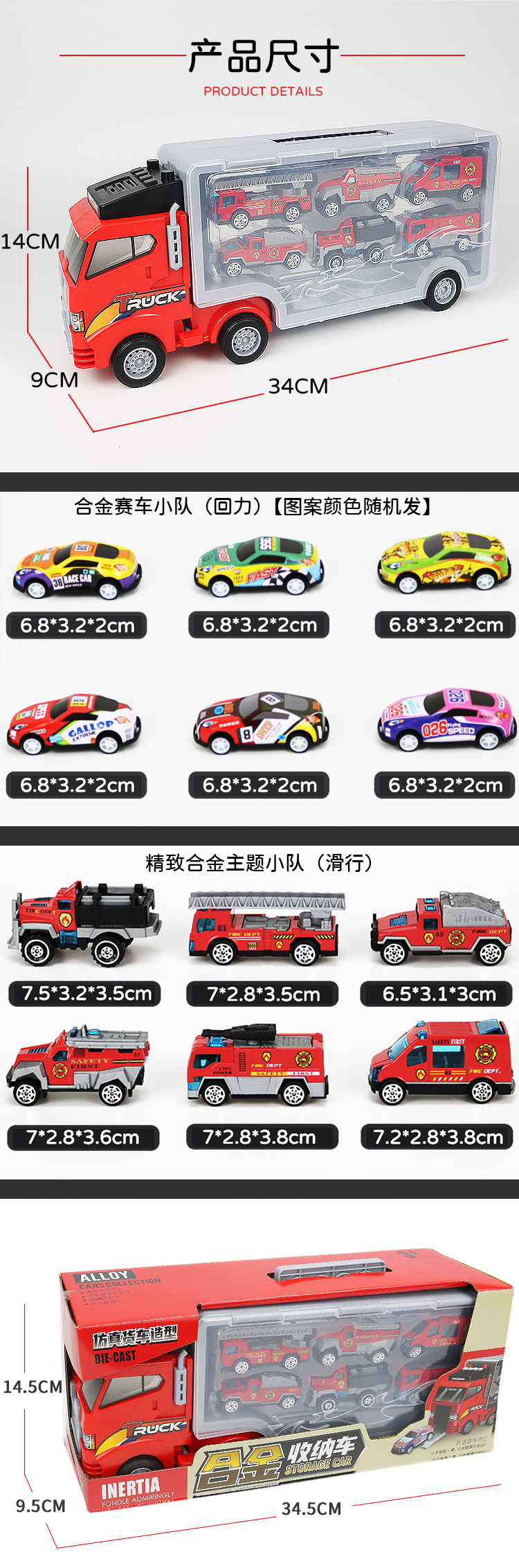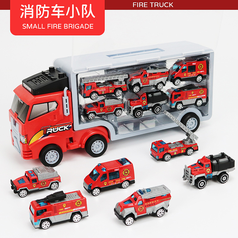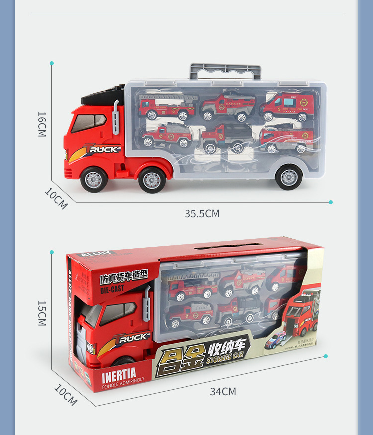 국경 간 어린이 저장 컨테이너 트럭 합금 엔지니어링 소방차 세트 선물 상자 0-6 세 소년 장난감 자동차 도매스토어 가기