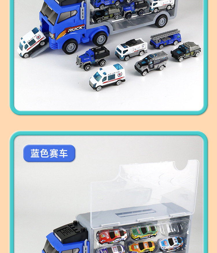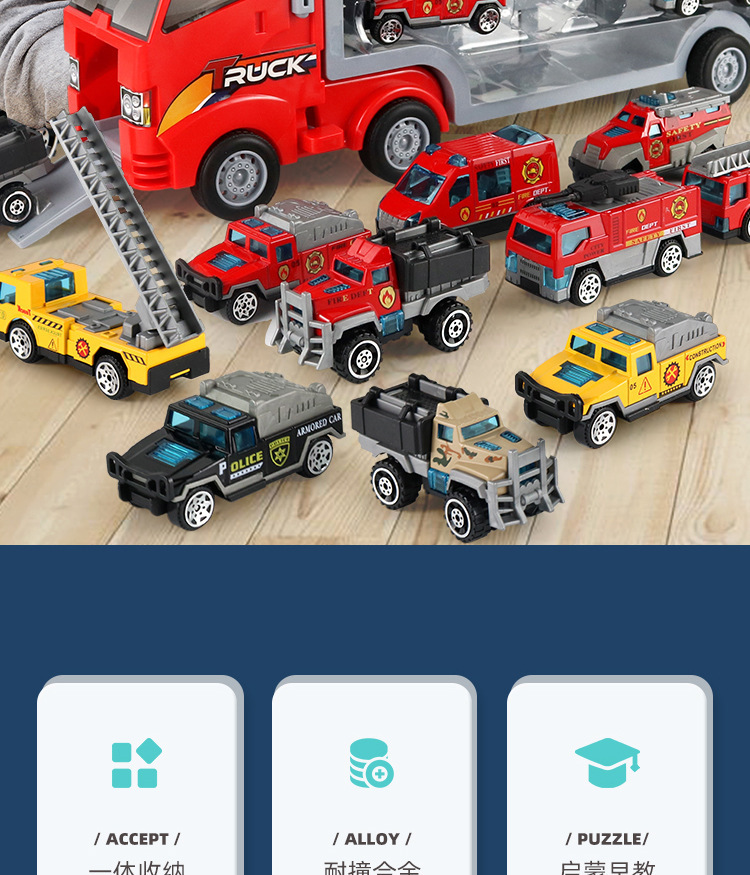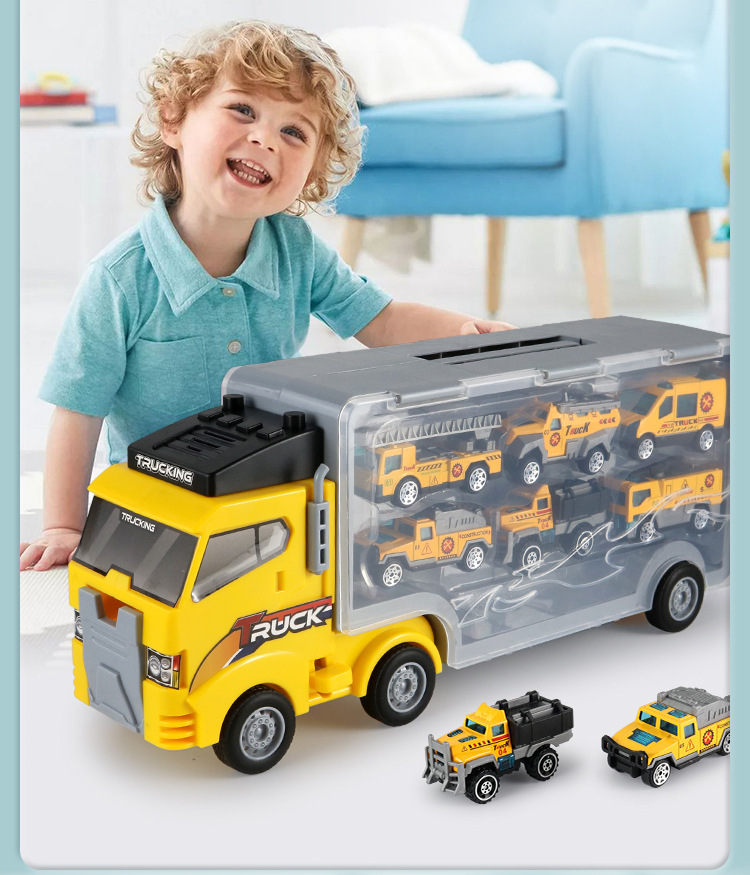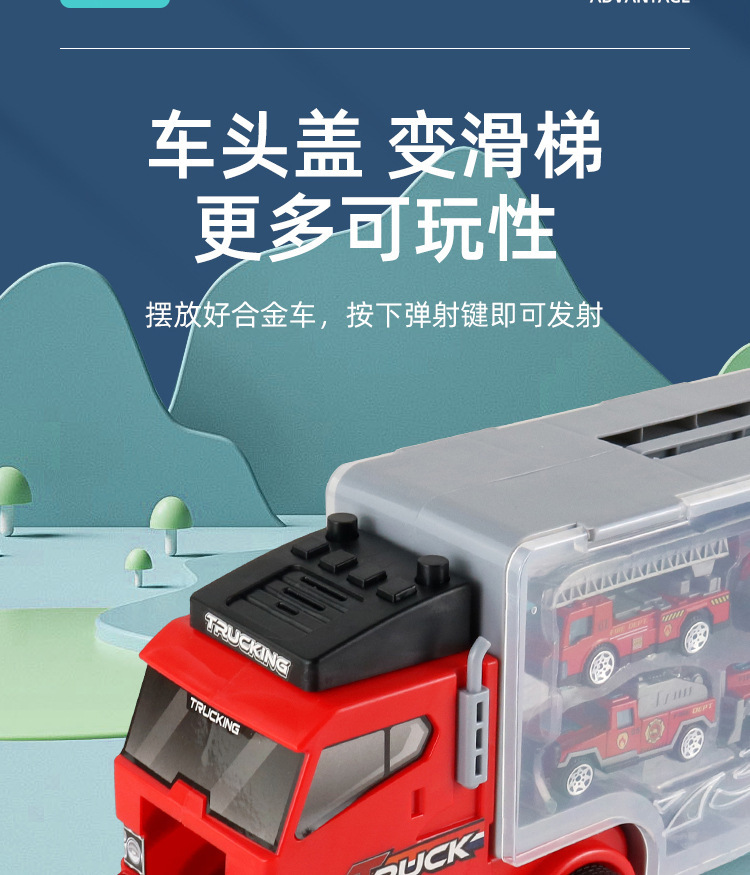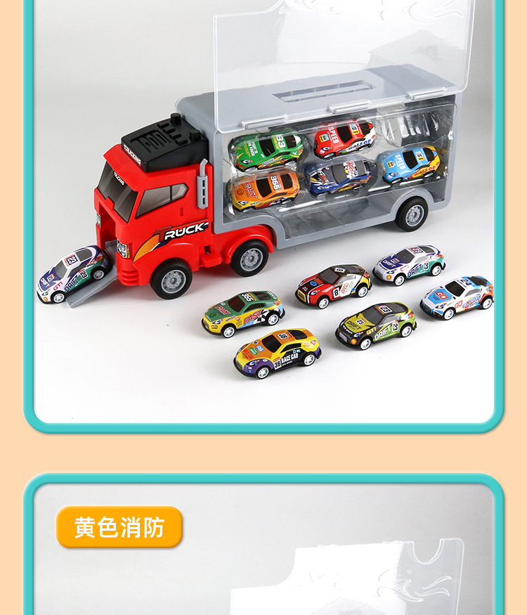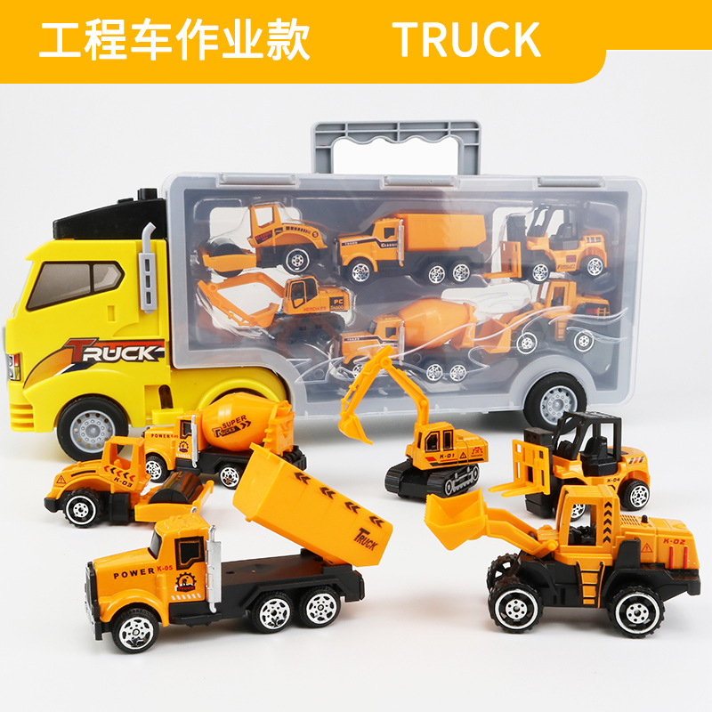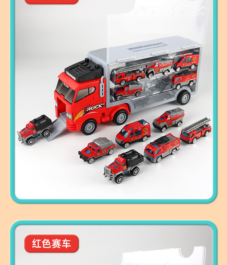 국경 간 어린이 저장 컨테이너 트럭 합금 엔지니어링 소방차 세트 선물 상자 0-6 세 소년 장난감 자동차 도매스토어 가기