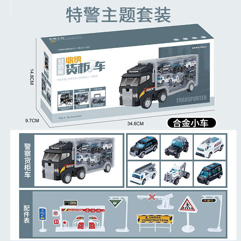 • [봉인 된 상자] 블랙 카트/합금 특수 경찰차 도로 표지판