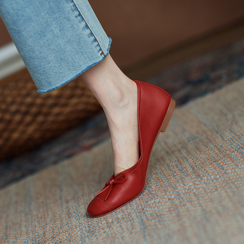 소가죽 버전 대량 판매! 플랫 리본 노리개신발 여성 발레 슈즈 얕은 굽 패션 작은 빨간 신발스토어 가기