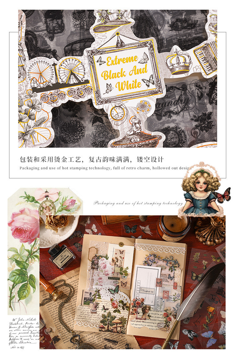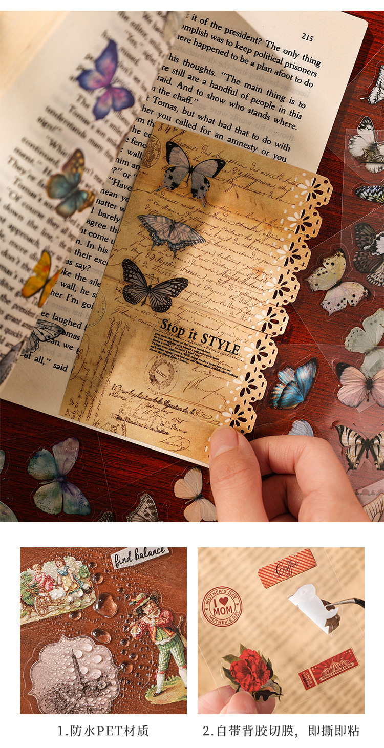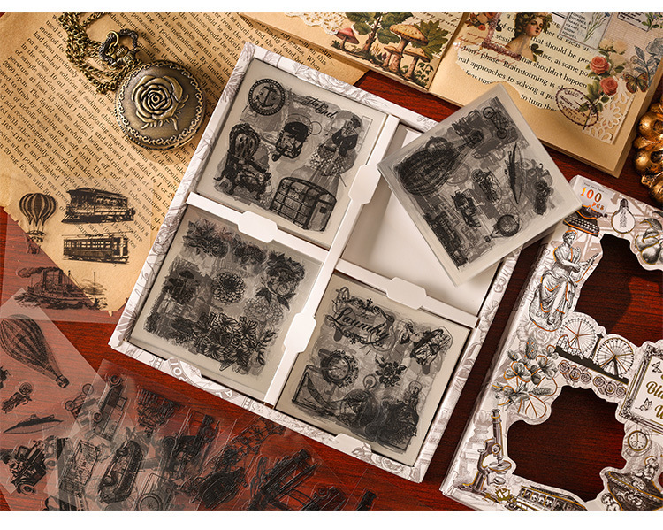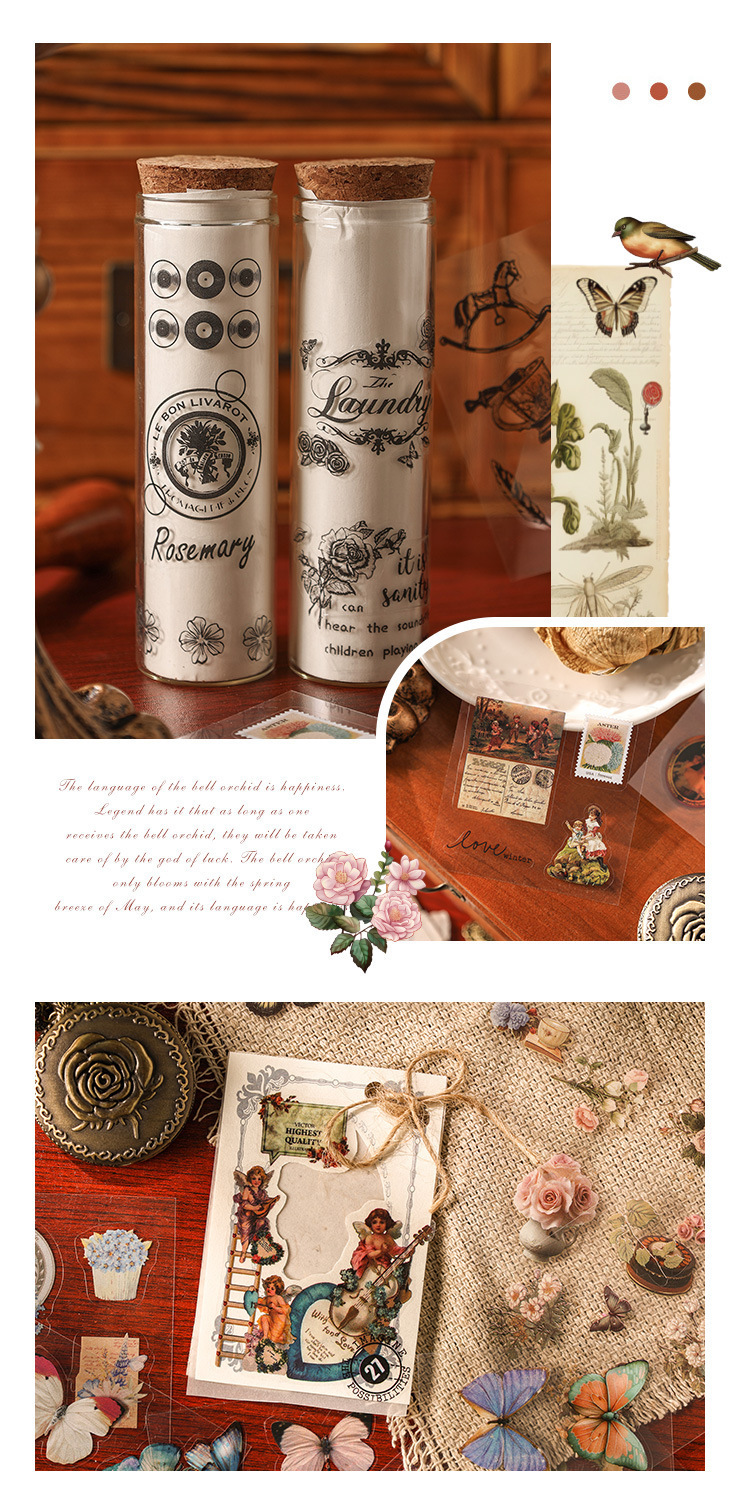 100 박스 빈티지 스티커 유럽과 미국의 캐릭터 스티커 꽃 나비 손 계정 diy 장식 자기 접착 작은 패턴