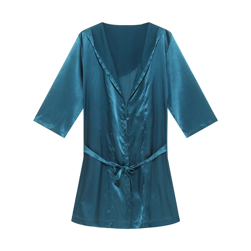 반 카즈 커플 목욕 가운 단색 얇은 섹시한 반팔 간단한 느슨한 목욕 가운 남녀 플러스 사이즈 레이스 업 파자마스토어 가기