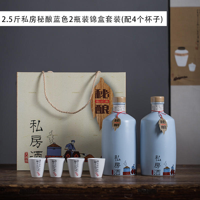 • 1.25kg 프라이빗 비브트 블루 2병 브로케이드 박스 세트(4컵 포함)
