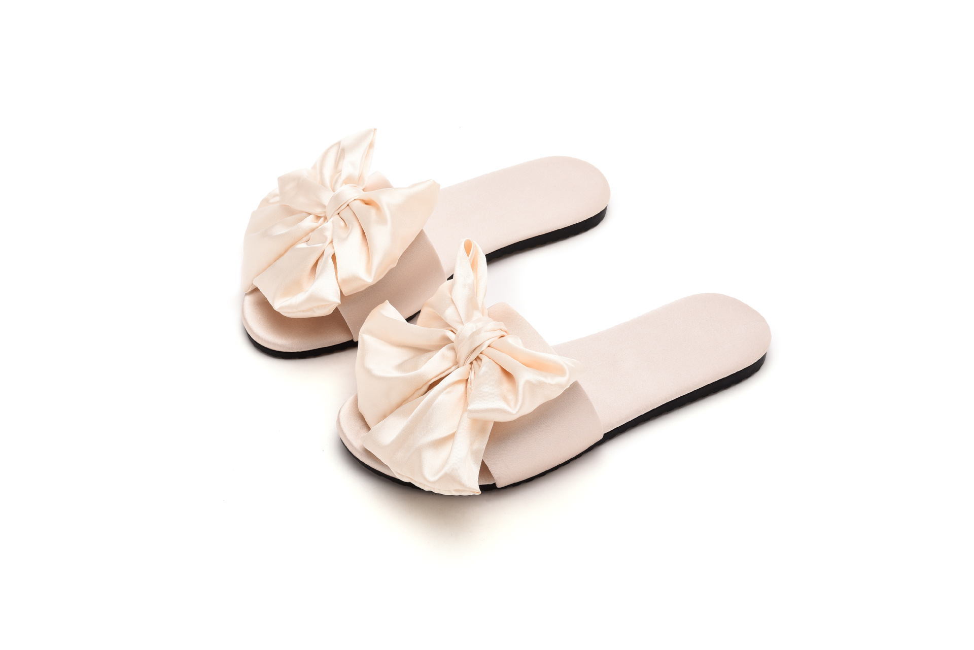 프랑스 새틴 슬리퍼 여성 실내 홈 봄과 여름 미끄럼 방지 여성의 2024 새로운 스타일 서양식 한 단어 슬리퍼스토어 가기