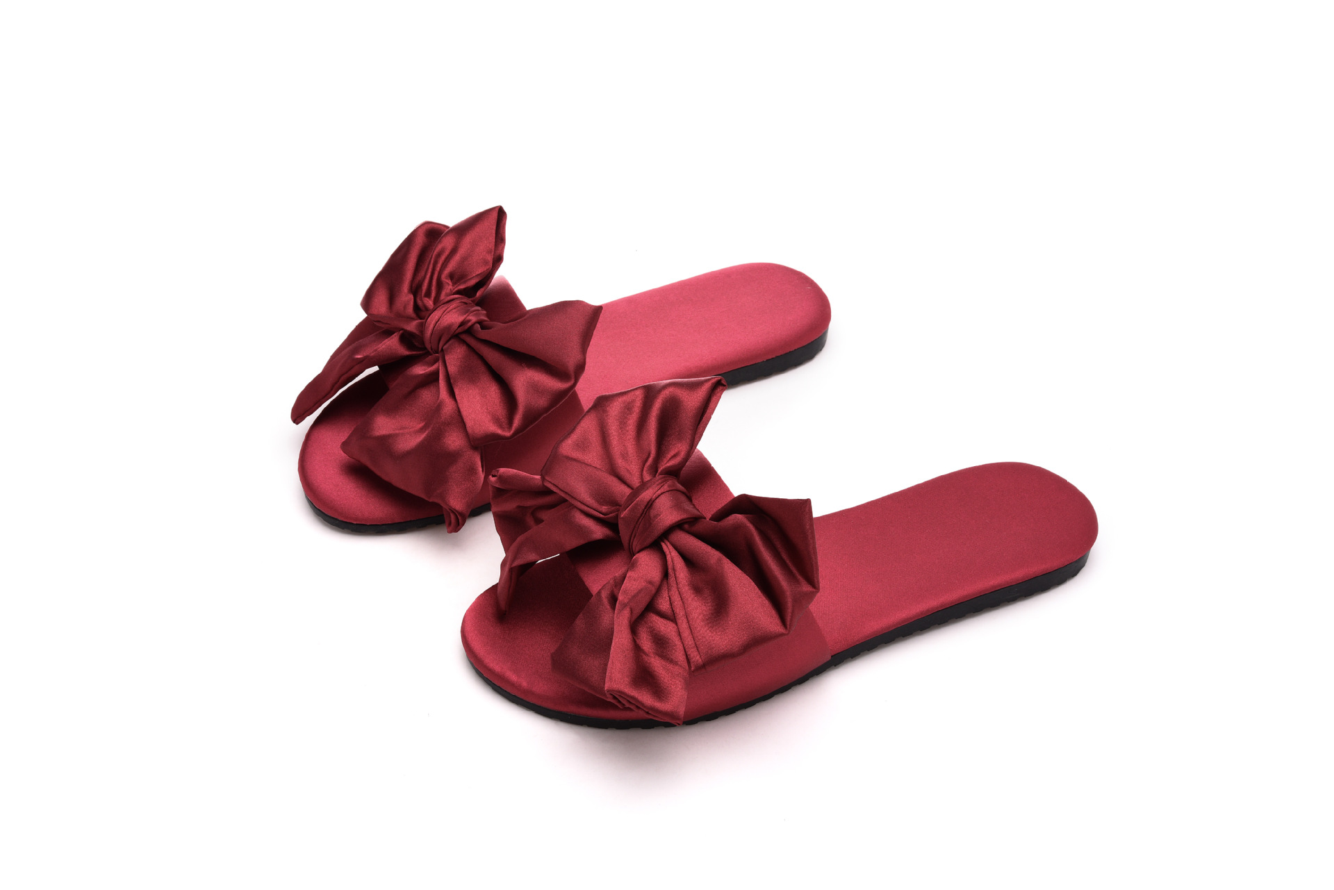 프랑스 새틴 슬리퍼 여성 실내 홈 봄과 여름 미끄럼 방지 여성의 2024 새로운 스타일 서양식 한 단어 슬리퍼