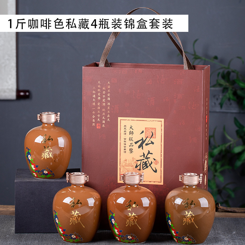 Jingdezhen 1 진 세라믹 빈 와인 병 봉인 와인 항아리 가정용 작은 제단 와인 항아리 노란색 와인 항아리 선물 상자 세트스토어 가기