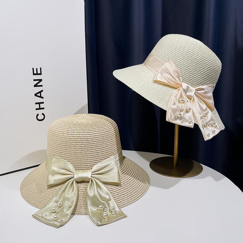 Yi Yi 여름 새로운 한국 스타일 진주 활 큰 처마 햇살 어부 모자 유행 패션 올매치 분지 모자 여행 모자스토어 가기