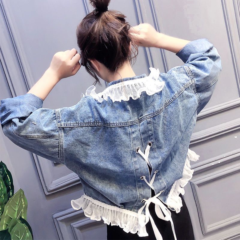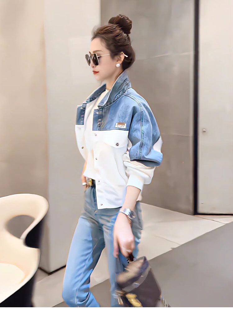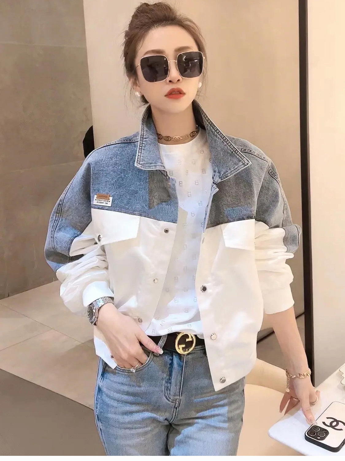 [재고] 데님 코트 여성 2024 년 봄 · 가을 새 바느질 자수 콘트라스트 컬러 데님 의류 여성 자켓 조수스토어 가기