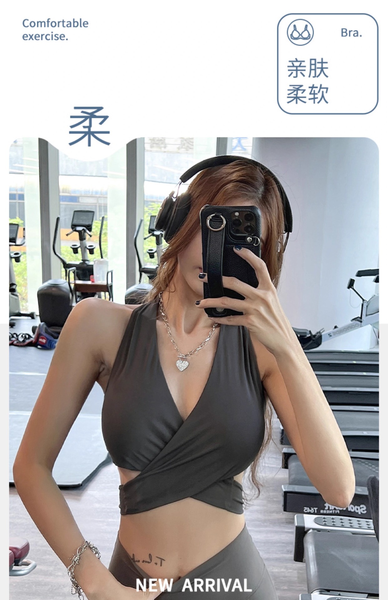 섹시한 스트랩 스포츠 속옷 슬림 핏 슬리밍 여성 여름 V 넥 요가 브래지어 착용 피트니스 전문 교육 아름다운 뒤