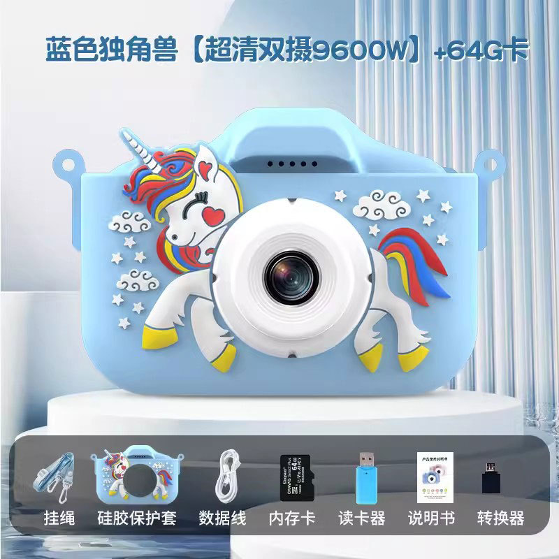 • [핑크 유니콘] HD 듀얼 카메라 9600W 64G 메모리 카드
