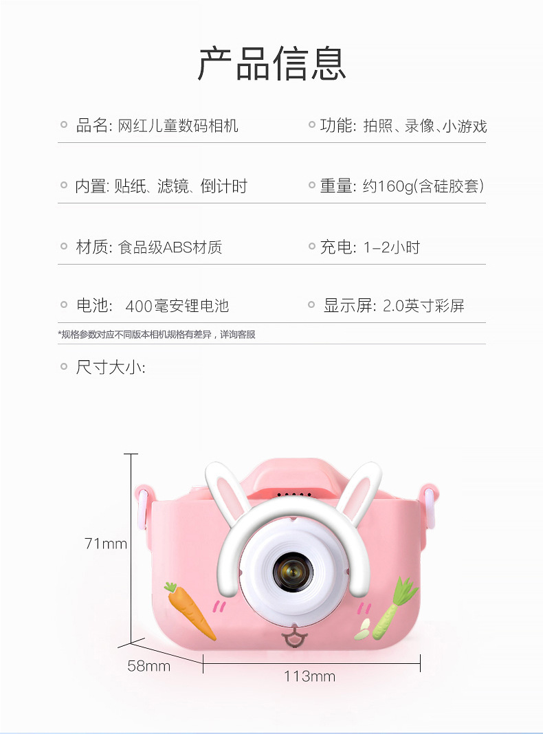 • [핑크 낙서 토끼] HD 듀얼 카메라 9600W 32G 메모리 카드