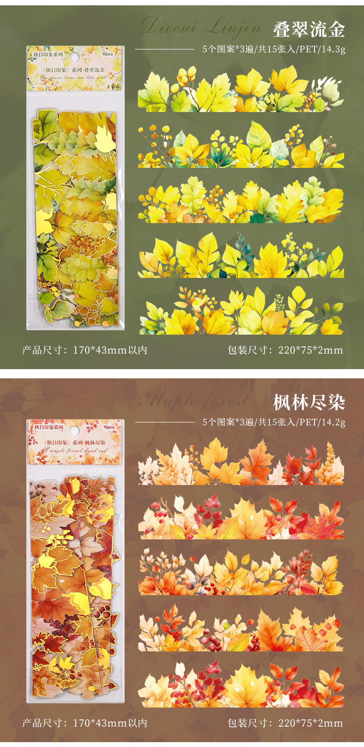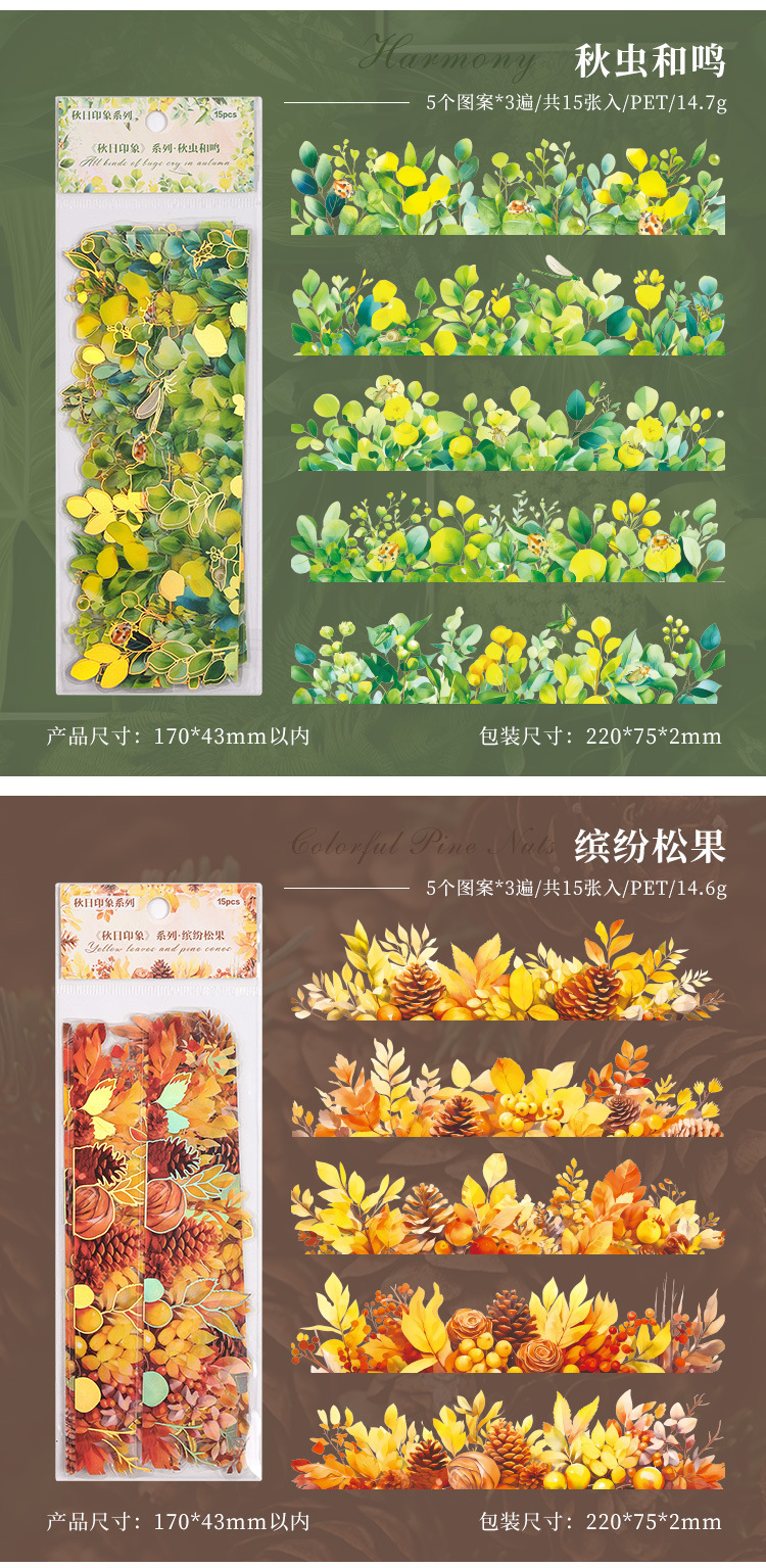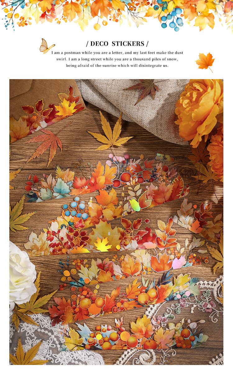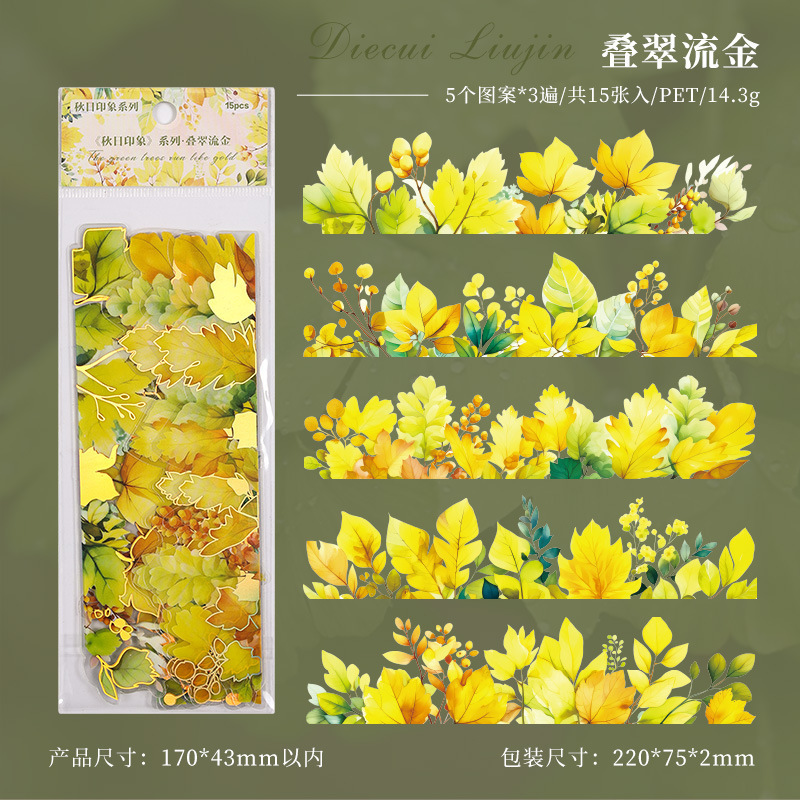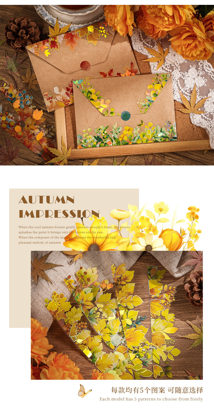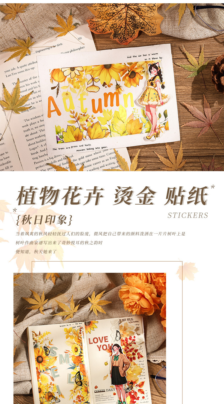 가을 인상 식물은 애완 동물 청동 스티커 가방 복고풍 꽃 손 계정 콜라주 DIY 장식 재료 스티커를 떠난다스토어 가기