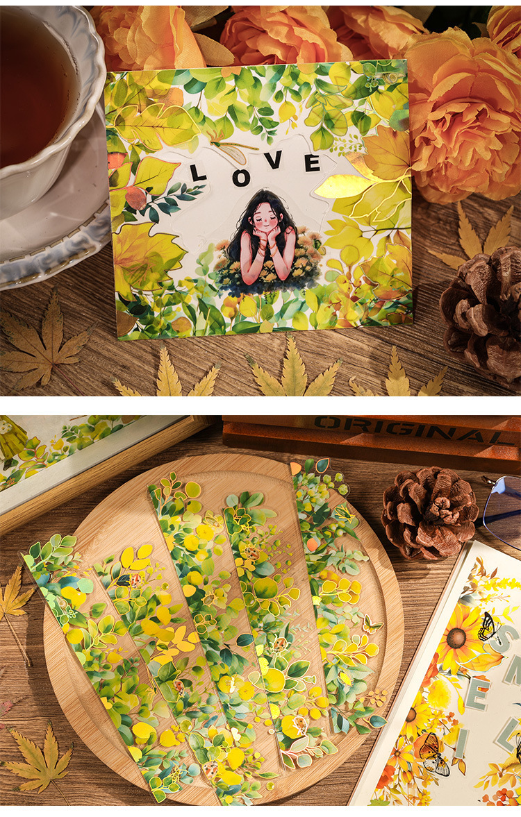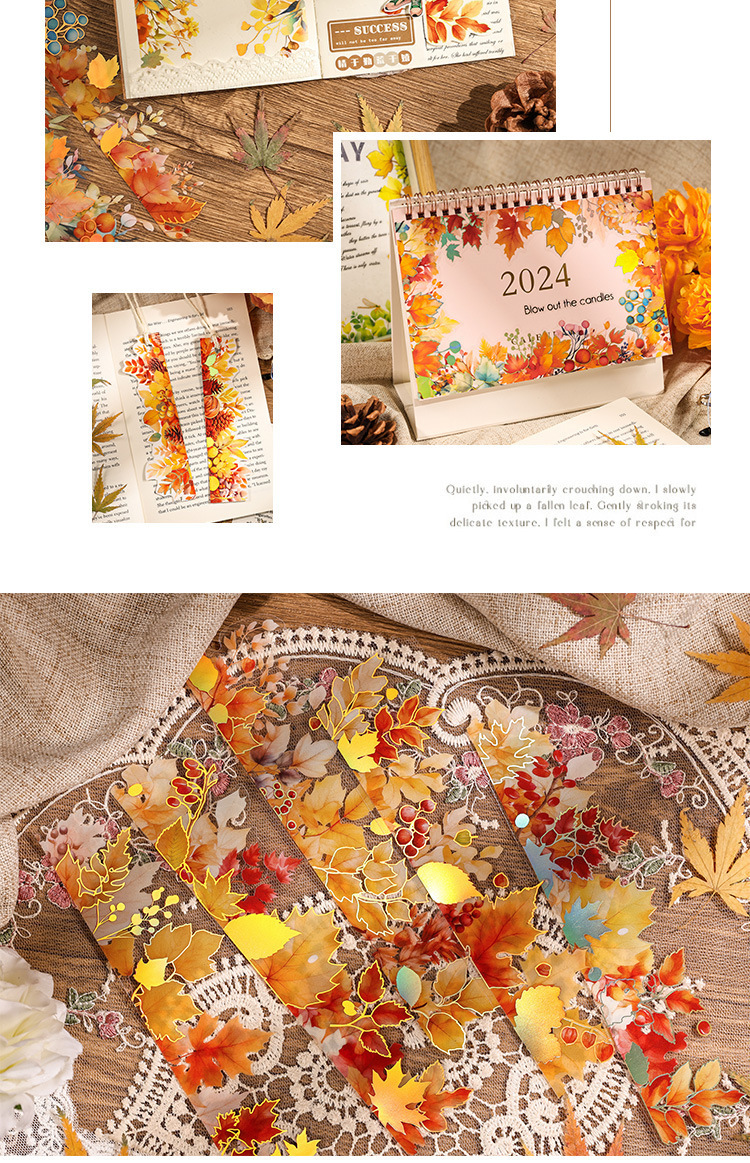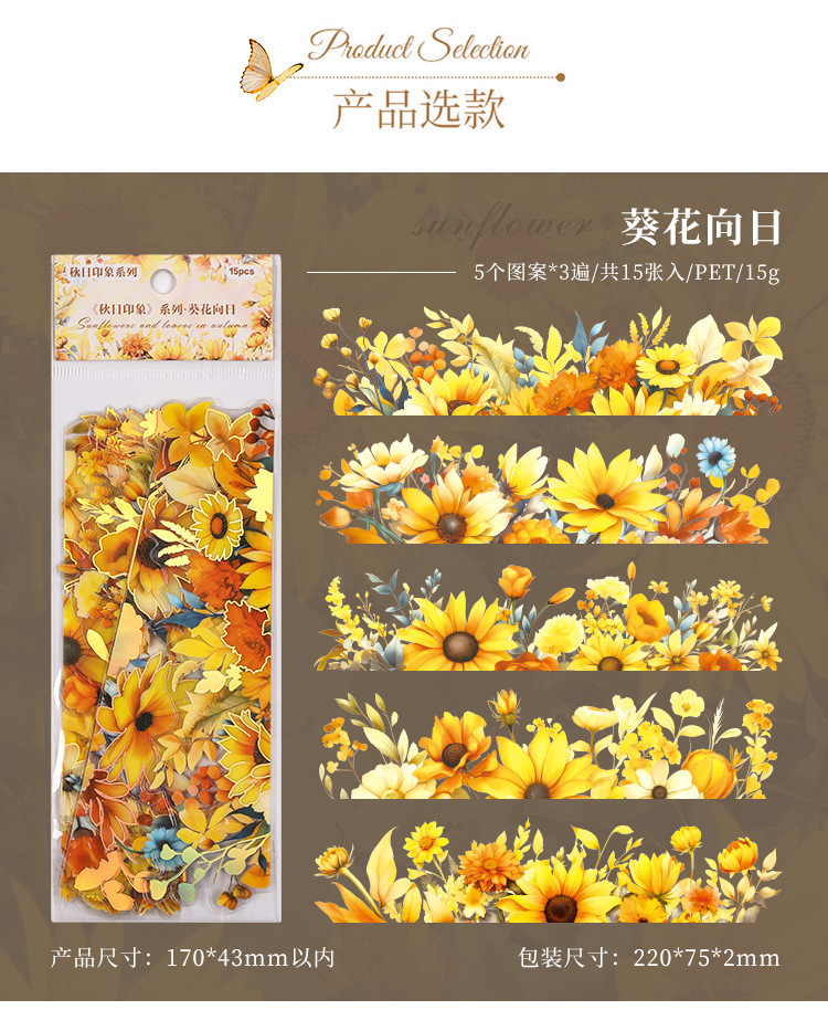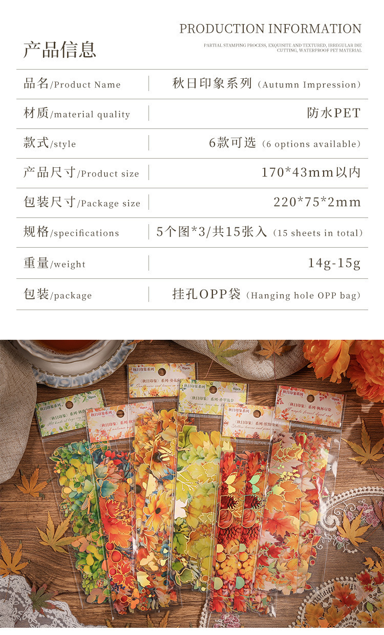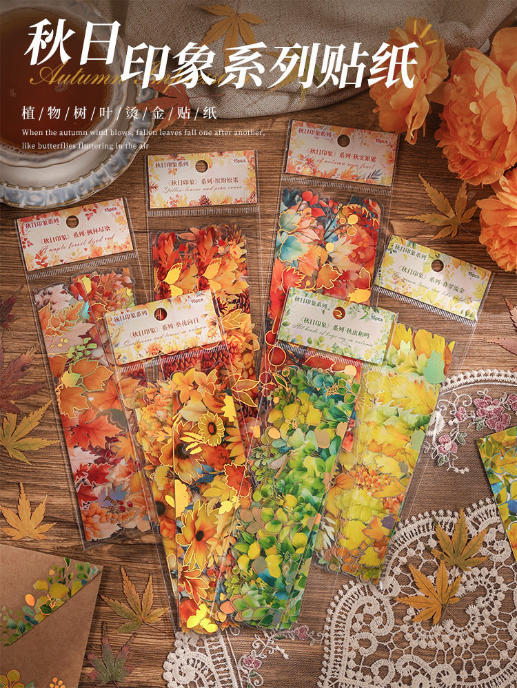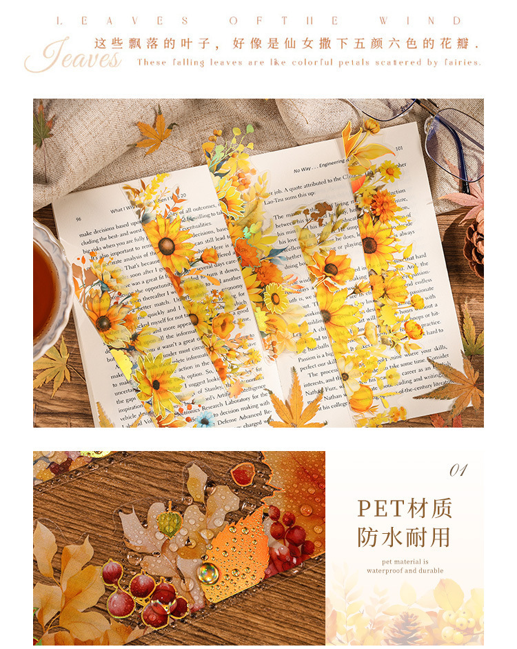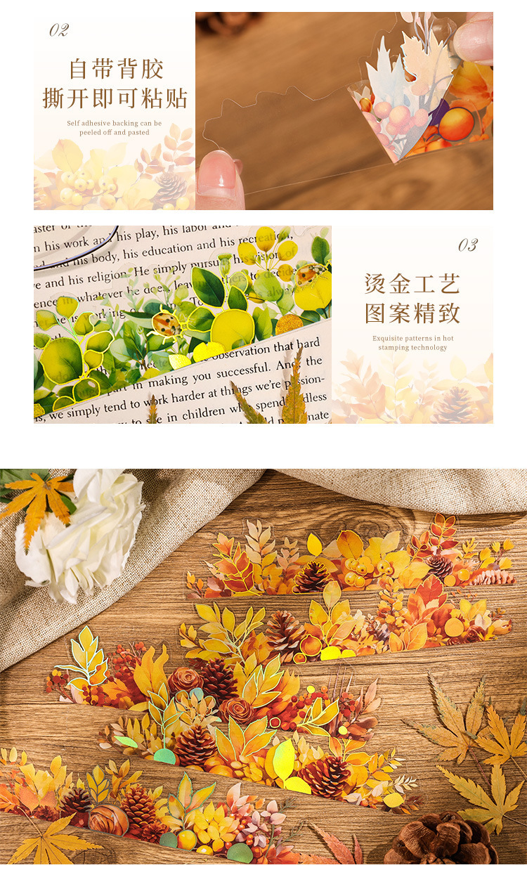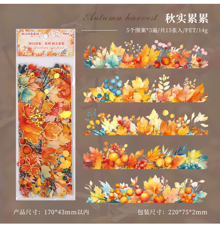가을 인상 식물은 애완 동물 청동 스티커 가방 복고풍 꽃 손 계정 콜라주 DIY 장식 재료 스티커를 떠난다스토어 가기