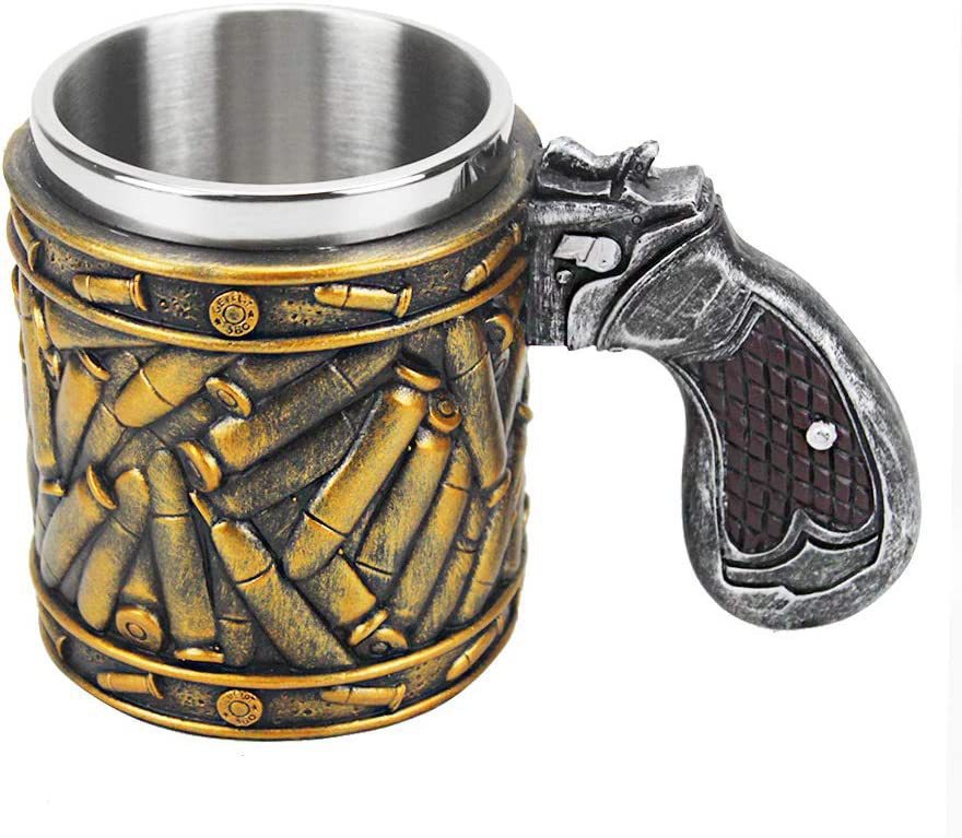 크로스 국경 핫 세일 권총 총알 맥주 머그잔 스테인레스 스틸 남성 커피 머그잔 와인 머그잔 아버지의 날 크리스마스 선물스토어 가기