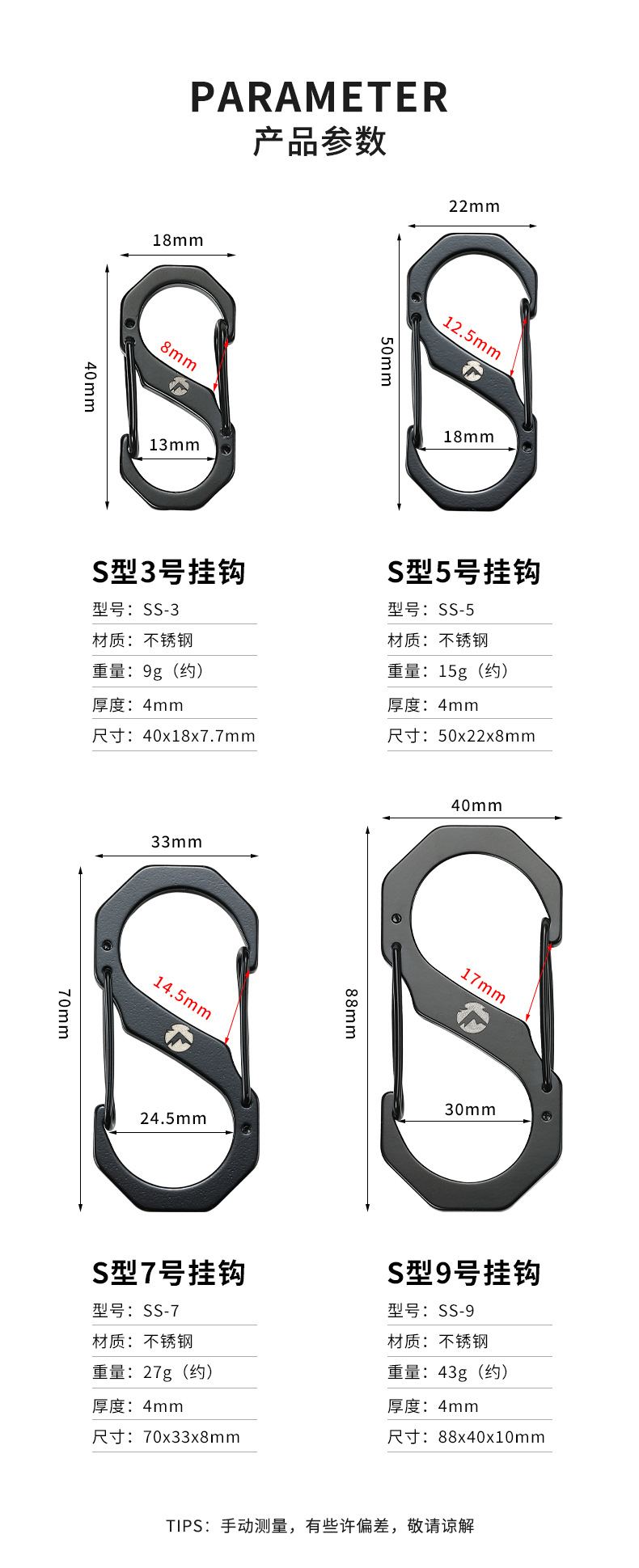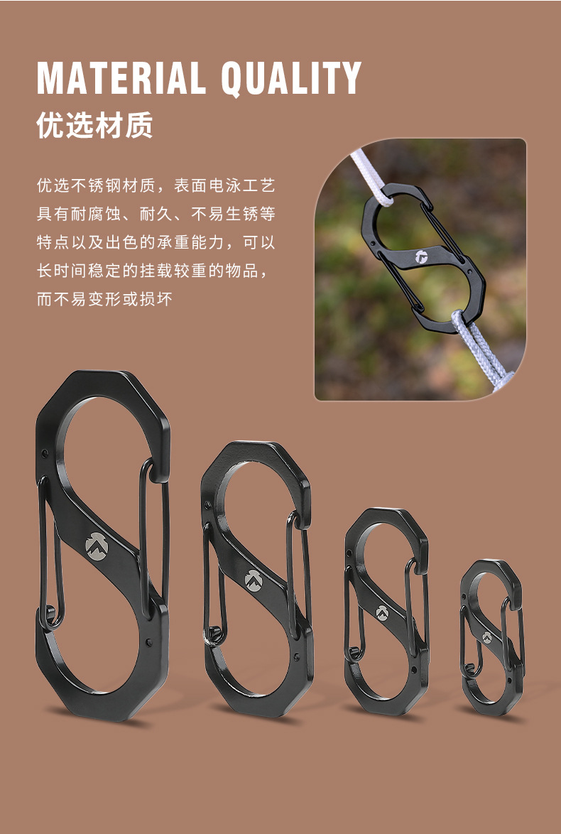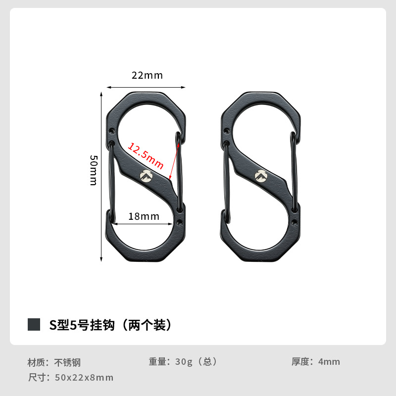 콜맨 SS-5 야외 S 자형 야외 골드 8 자형 버클 다기능 스테인레스 스틸 캠핑 휴대용 배낭 빠른 교수형 잠금 장치