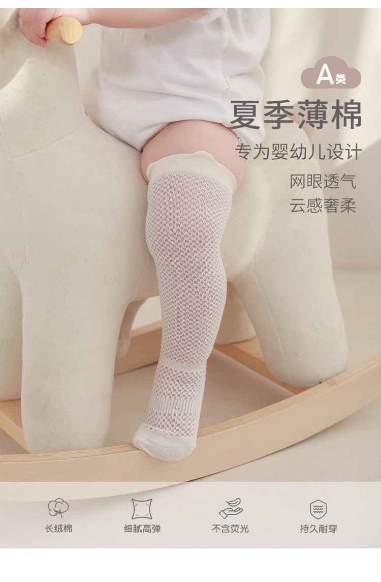 아기 모기 양말 여름 메쉬 얇은 아기 높은 튜브 통기성 신생아 긴 튜브 선 스크린 에어컨 면 양말 도매