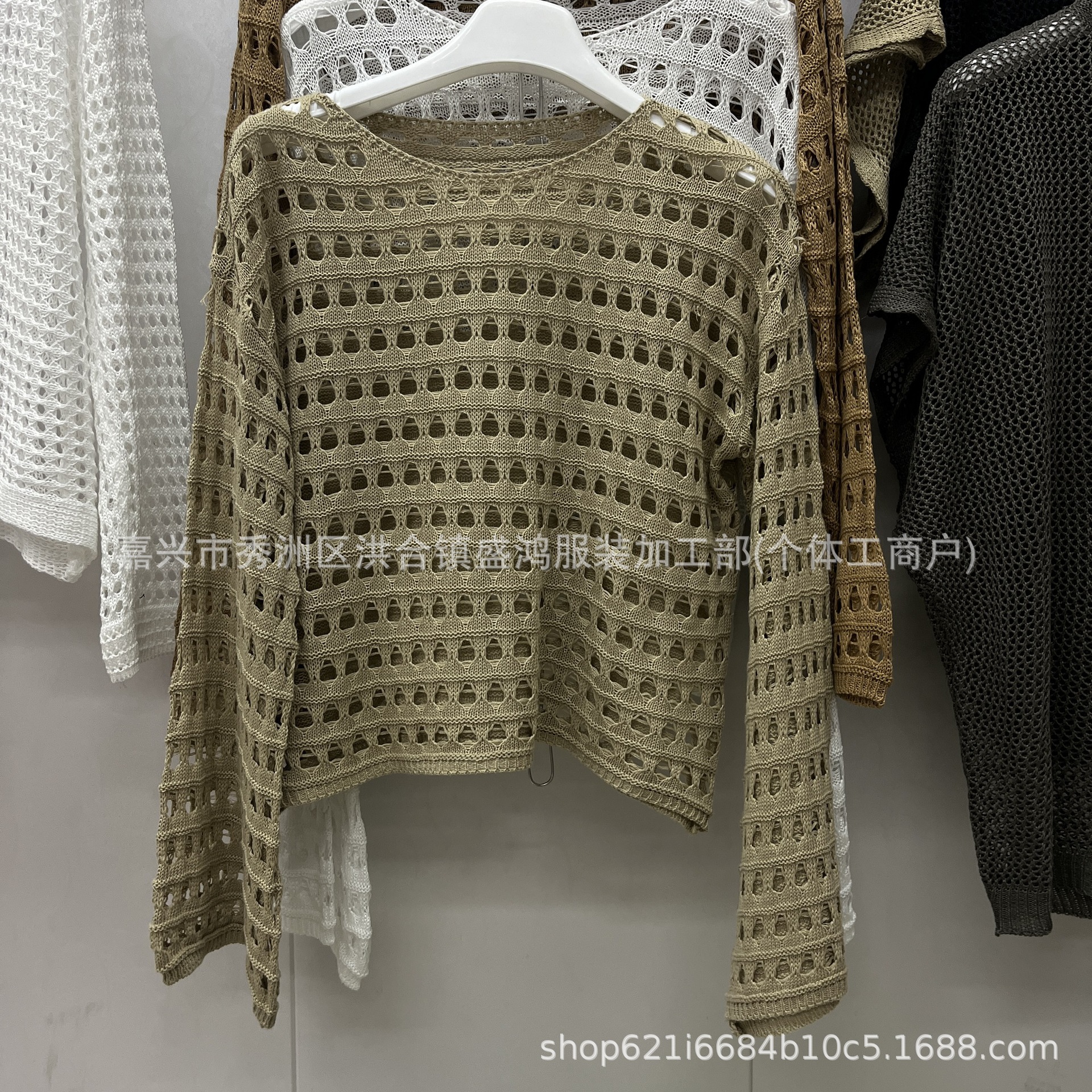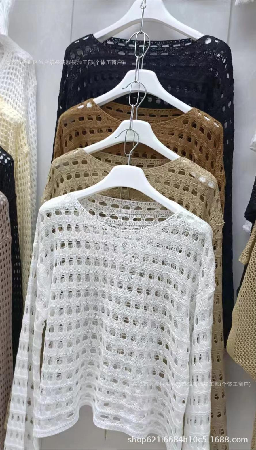 여성 패션 둥근 목 긴 소매 느슨한 니트 풀오버 게으른 스타일 디자인 틈새 빈 메쉬 니트 스웨터스토어 가기