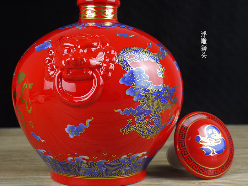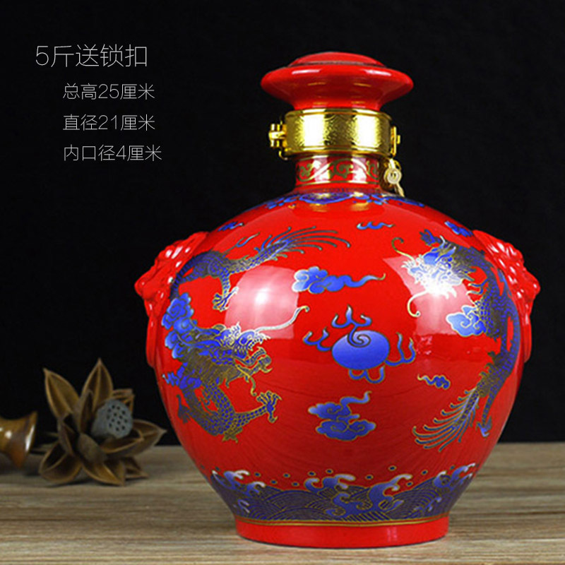 5kg 세라믹 와인 병 Jingdezhen 세라믹 와인 항아리 중국 레드 와인 병 Shuanglong Xizhu 와인 포트 와인 세트 자물쇠스토어 가기