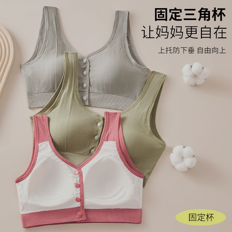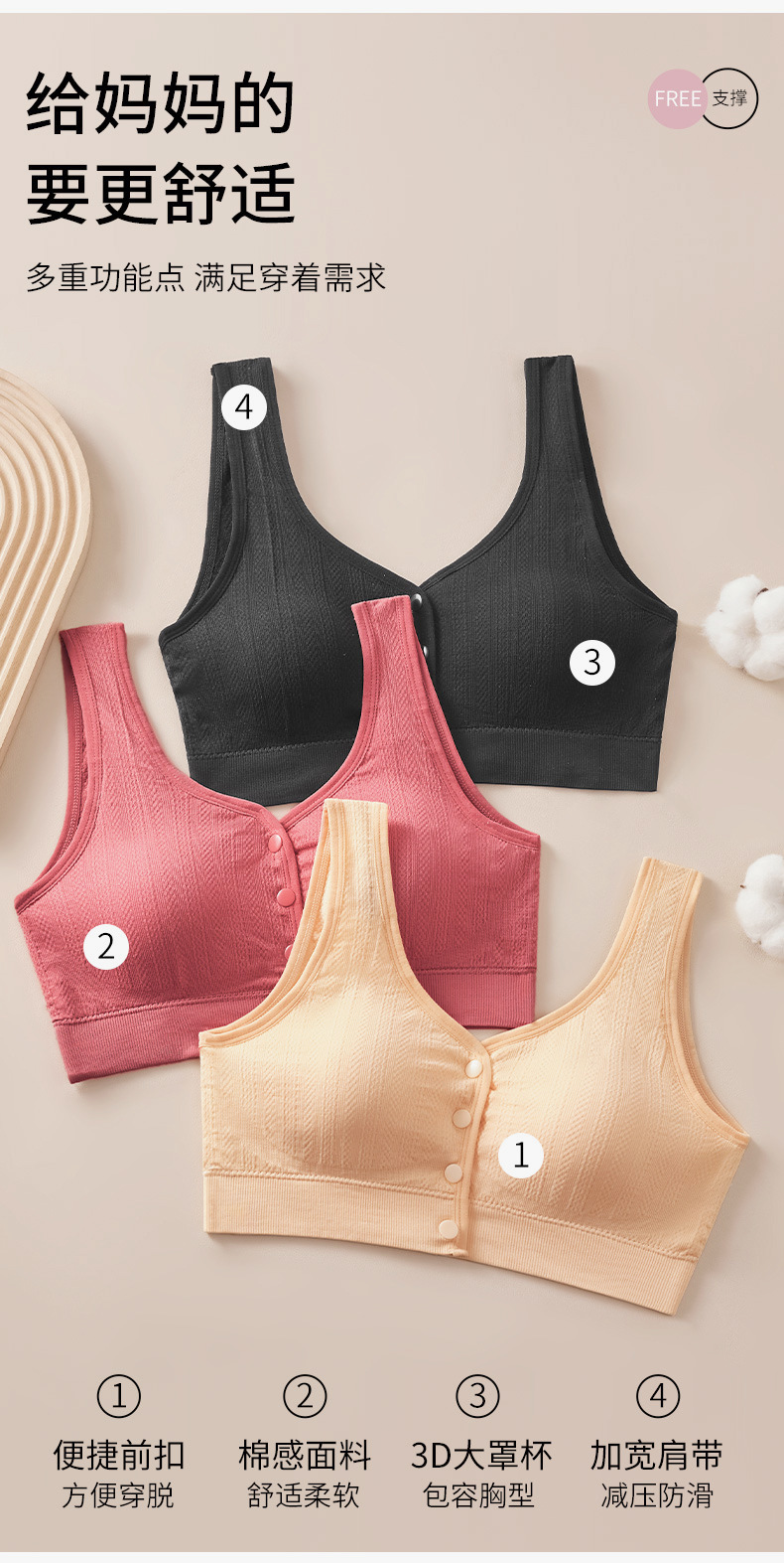 엄마의 속옷 여성 중년 및 노인 여성 스틸 링 고정 컵 삼각형 컵 플러스 사이즈 브라 조끼 프론트 버클 브라스토어 가기