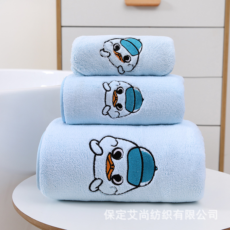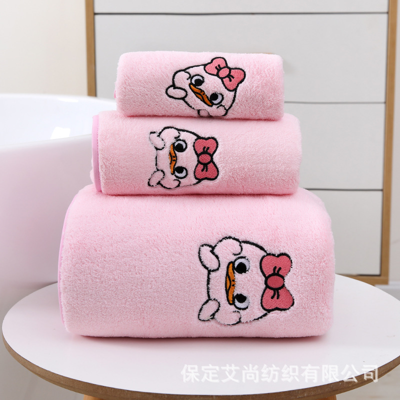 산호 양털 암호화 폰크 오리 목욕 타월 스퀘어 타월 세트 수건 커플 얼굴 타월 어린이 만화 자수 강한 흡수성