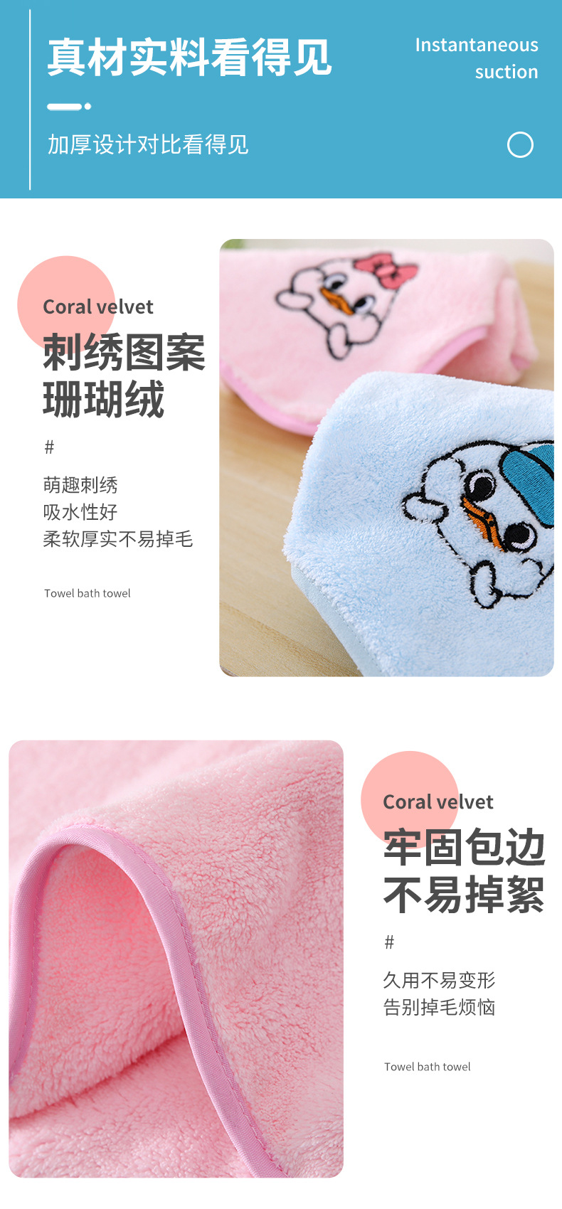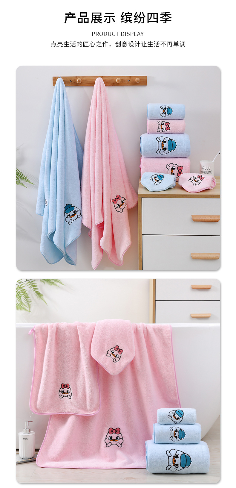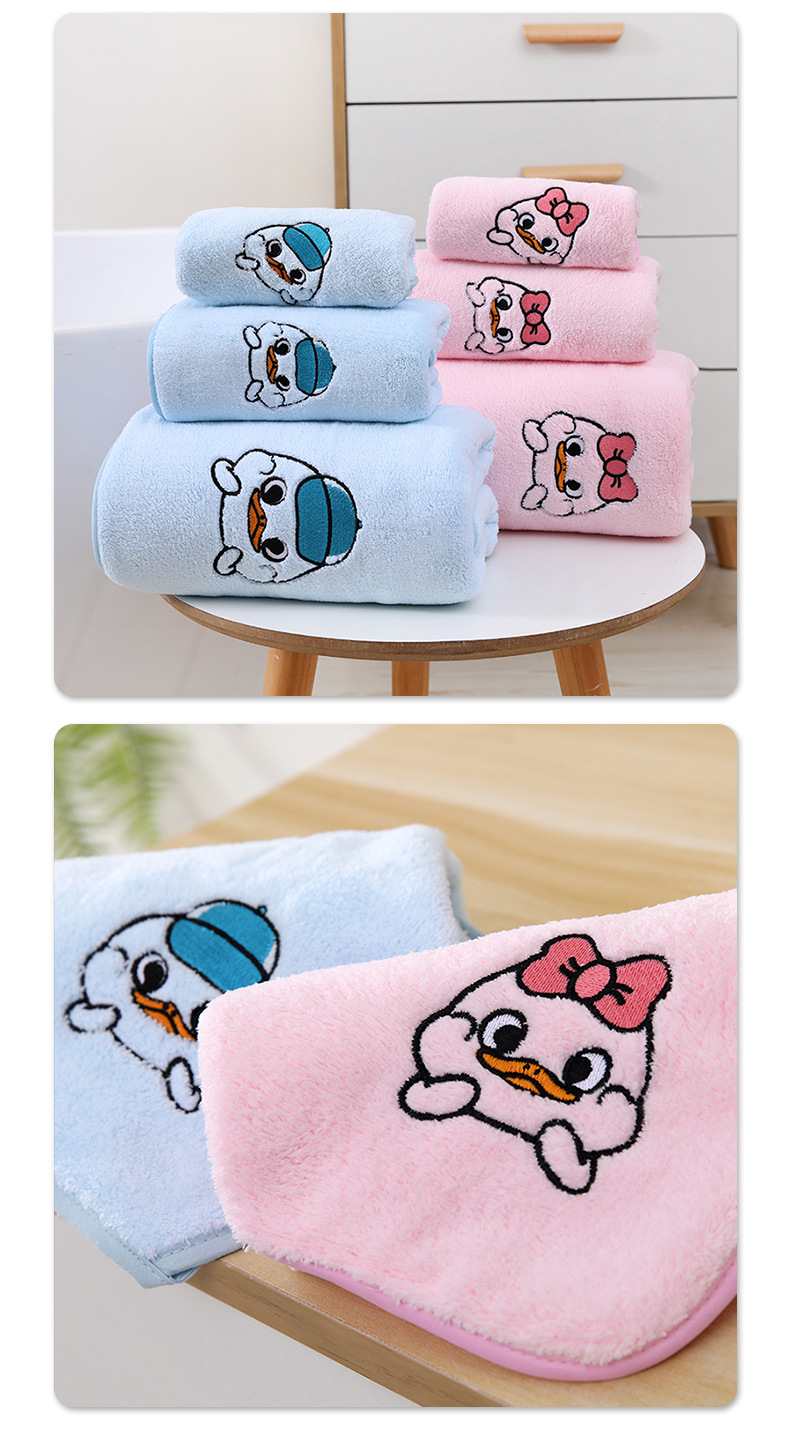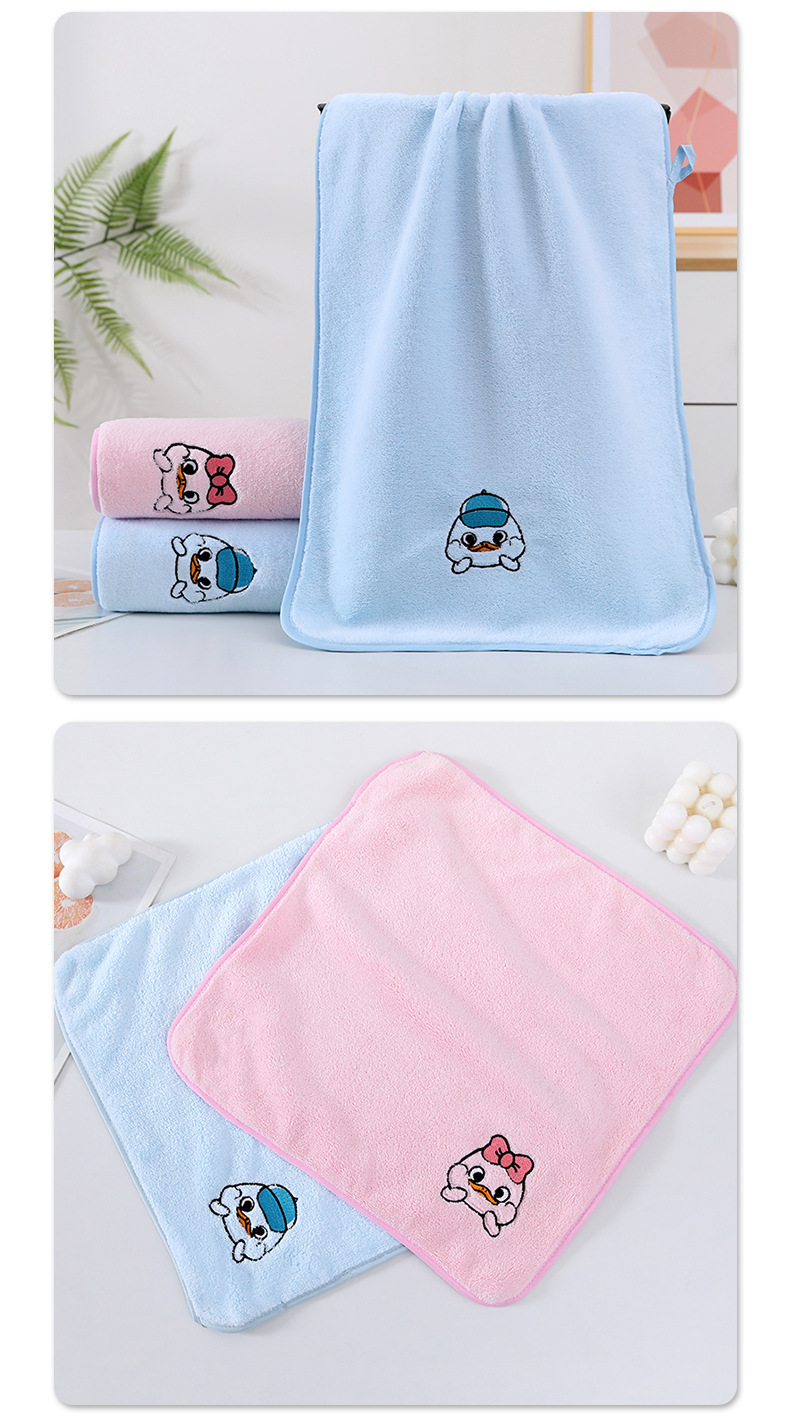 산호 양털 암호화 폰크 오리 목욕 타월 스퀘어 타월 세트 수건 커플 얼굴 타월 어린이 만화 자수 강한 흡수성스토어 가기