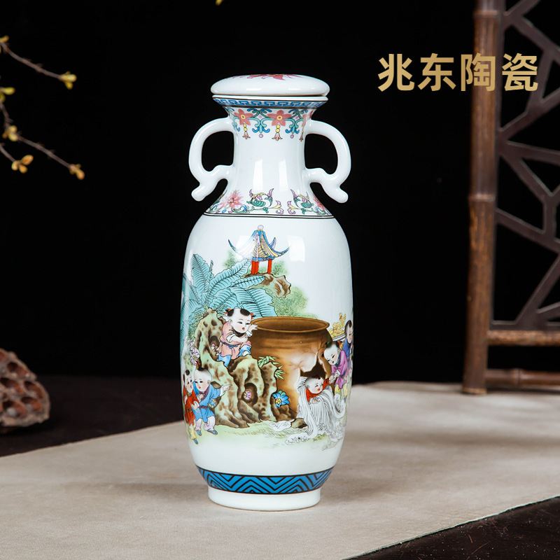 공장 도매 Jingdezhen 세라믹 화이트 Sima Guang 분쇄 실린더 세라믹 와인 병 3kg 병 와인 포트 도매스토어 가기