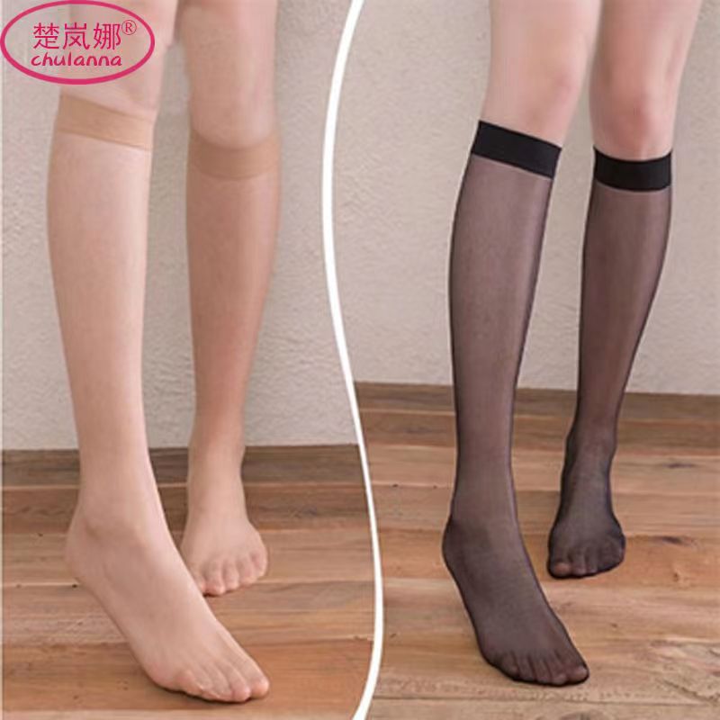 JK 미드 튜브 스타킹 여성용 안티 훅 실크 여름 초박형 슬리밍 블랙 살색 여름 중간 길이의 하프 튜브 송아지 짧은 양말